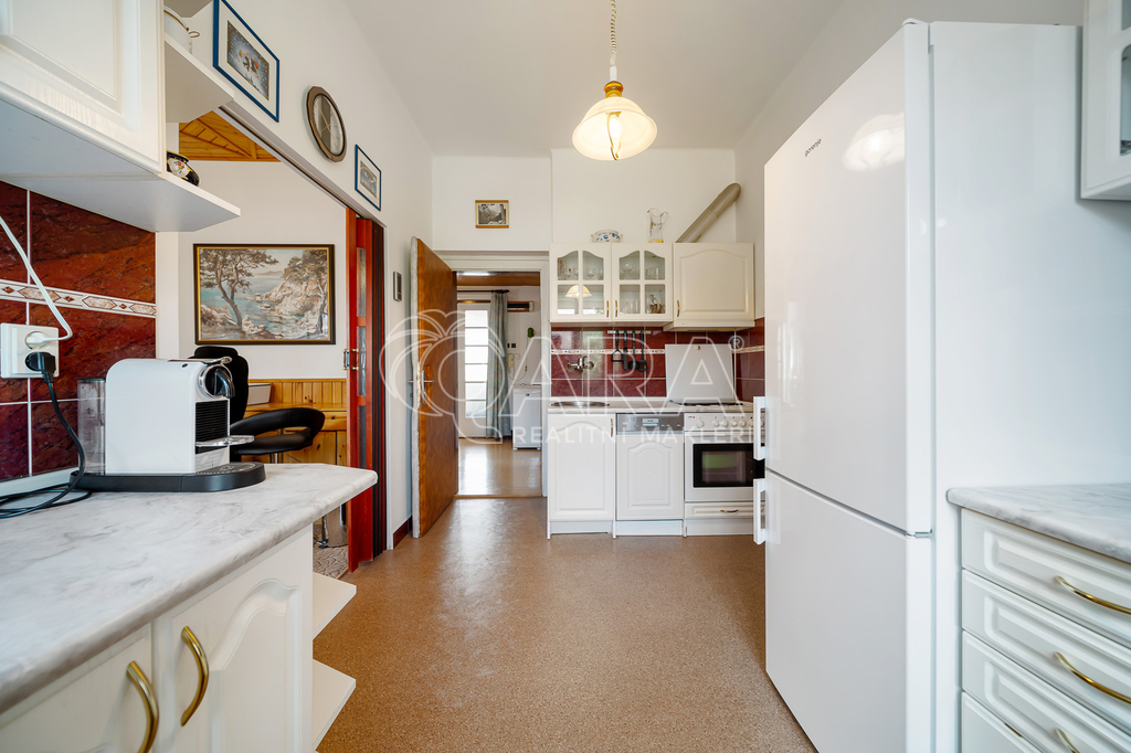 o První patro: Byt 3+1 o výměře přibližně 78 m², který byl před cca 25 lety zrekonstruován. Zahrnuje kuchyň, spíž, jídelnu, ob. pokoj s krbovými kamny, ložnici se zaskl. balkonem, komoru a koupelnu s vanou, sprch. koutem a s toaletou.