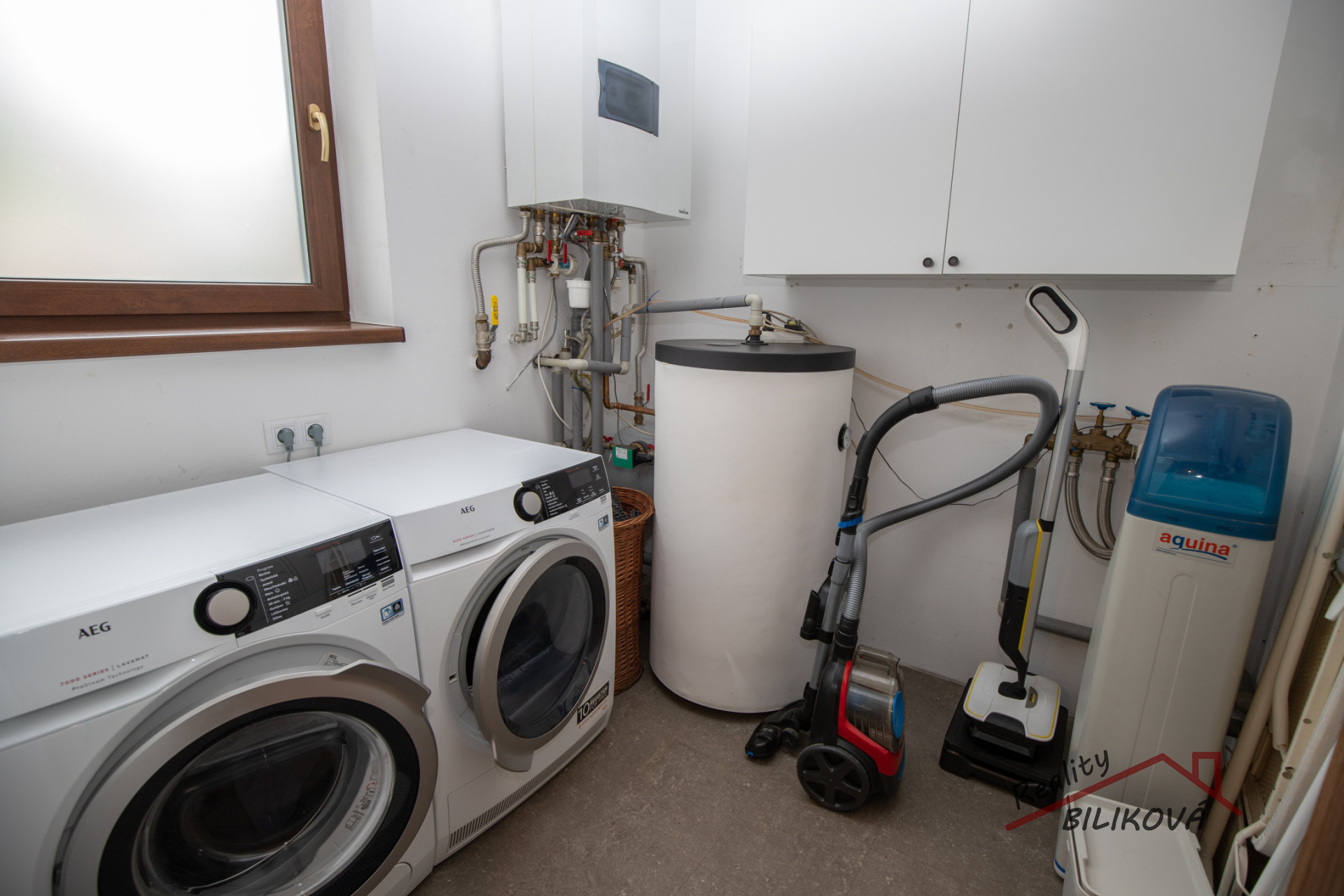Vybavení domu: kuchyňská linka včetně vestavěných spotřebičů (indukční varná deska, myčka nádobí, horkovzdušná a mikrovlná trouba), vestavěná skříň na chodbě a v ložnici.