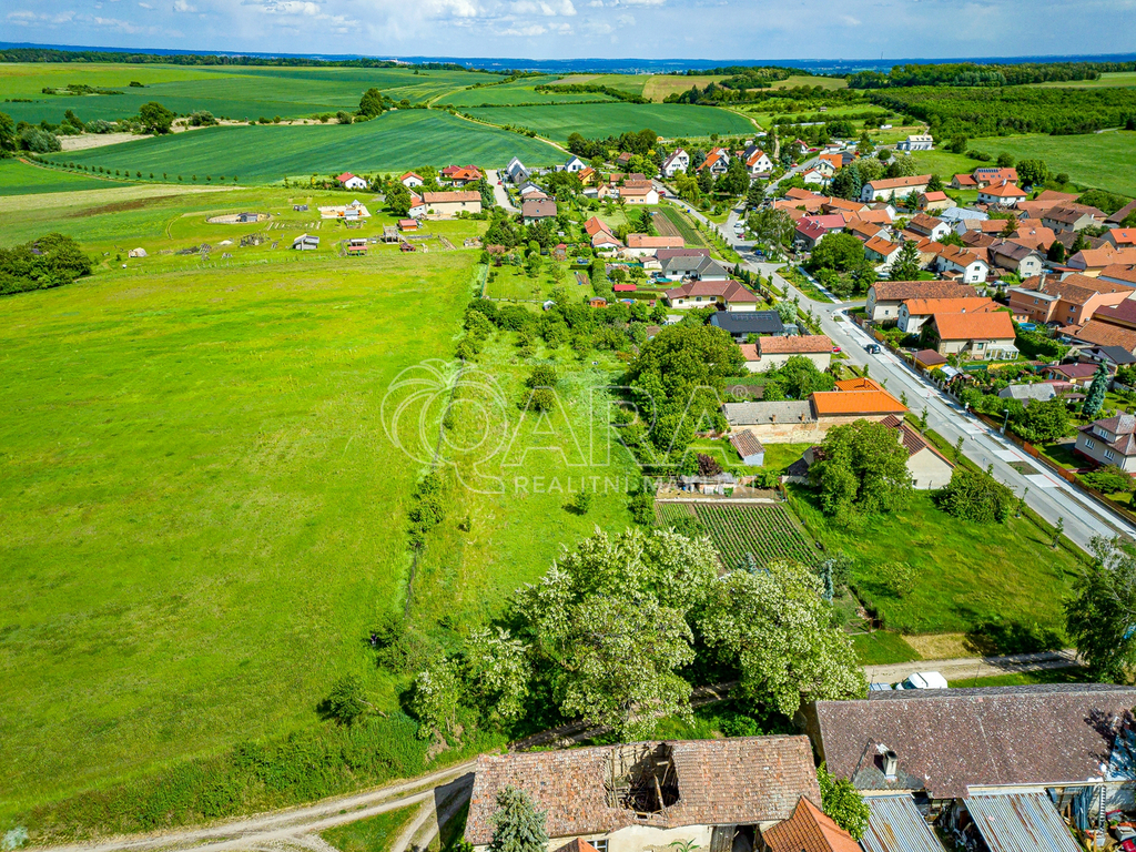 Pozemek má ideální obdélníkový tvar a navazuje na původní zástavbu na okraji obce s příjemným soukromím a výhledem do krajiny, které dominuje hora Říp.