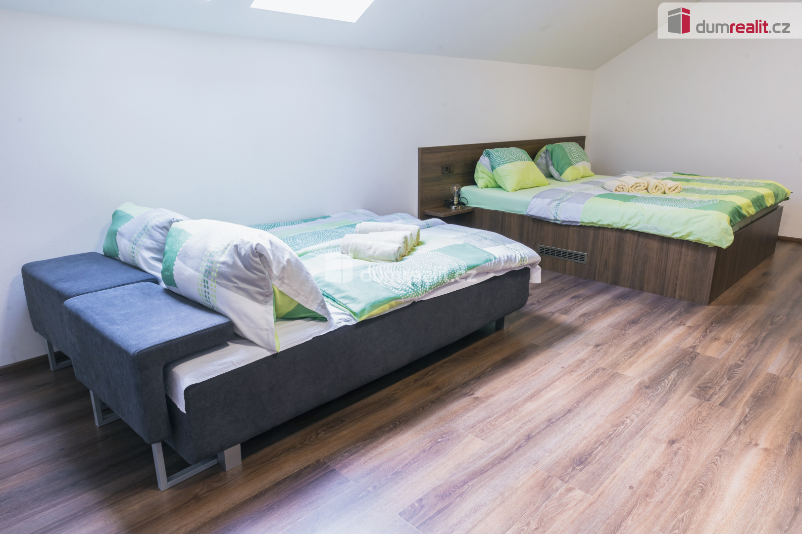 Naše společnost Vám zprostředkuje koupi novostavby penzionu s šesti dvoulůžkovými pokoji s možností přistýlek, a dvěma apartmány, pro ubytování celkově až 24 osob. Budova je dvoupodlažní, zděná, s venkovním bazénem i vnitřním wellness. V přízemí budovy se nachází kuchyňka s barem a jídelnou, recepce, sociální zázemí, místnosti pro personál, wellness zóna s vířivkou a saunou, technické zázemí s tepelným čerpadlem (vzduch/vzduch), pokoj s bezbariérovým přístupem. V prvním patře se pak nachází zbytek ubytovacích kapacit. Klimatizace v každém pokoji, vytápění pomocí fotovoltaiky (podlahové vytápění). Parkování zajištěno před budovou. Penzion zahájil svou činnost v září 2019, a těší se skvělé pověsti. Jeho plná kapacita je zajištěna nejenom díky výborné prezentaci, ale především na základě ověřených referencí, větší část klientely se již léta opakovaně vrací, a penzion je tak plně vytížen na měsíce dopředu. Doporučujeme ke koupi především těm, kteří touží převzít hotový projekt, který přináší okamžité zisky, bez nutnosti dalších investic, s možností si podnikání pouze přizpůsobit svým záměrům. Ev. číslo: 652085.