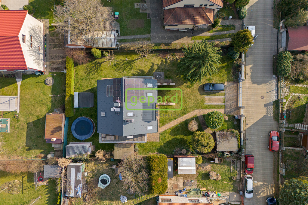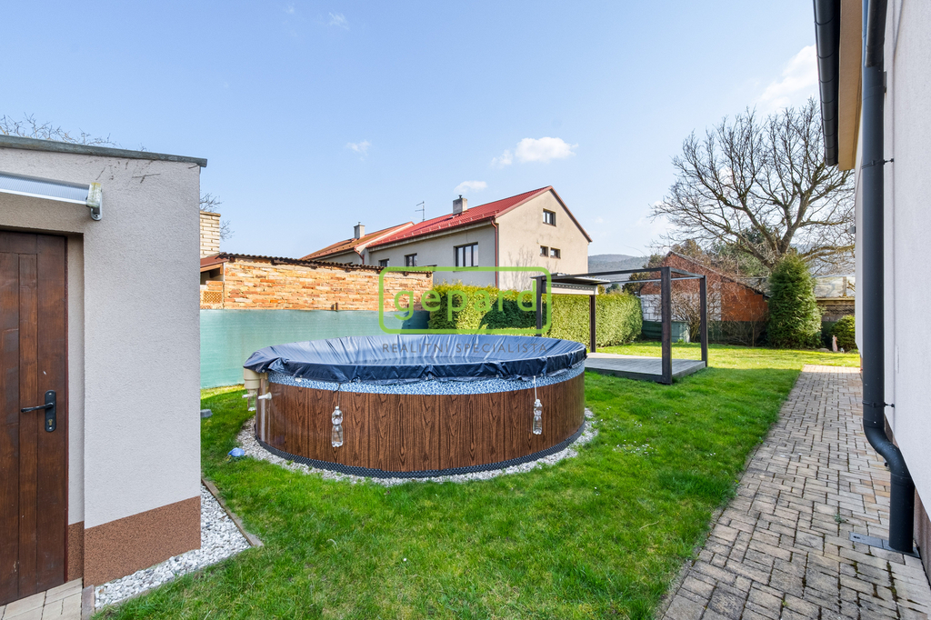 Na pozemku najdete vše, co od rodinného domu čekáte – a možná ještě o něco víc. Zahrada nabízí dostatek soukromí, pergolu s venkovním krbem pro dlouhé letní večery, bazén pro osvěžení i zahradní domek na praktické uskladnění věcí. Nechybí ani vlastní kopaná studna.