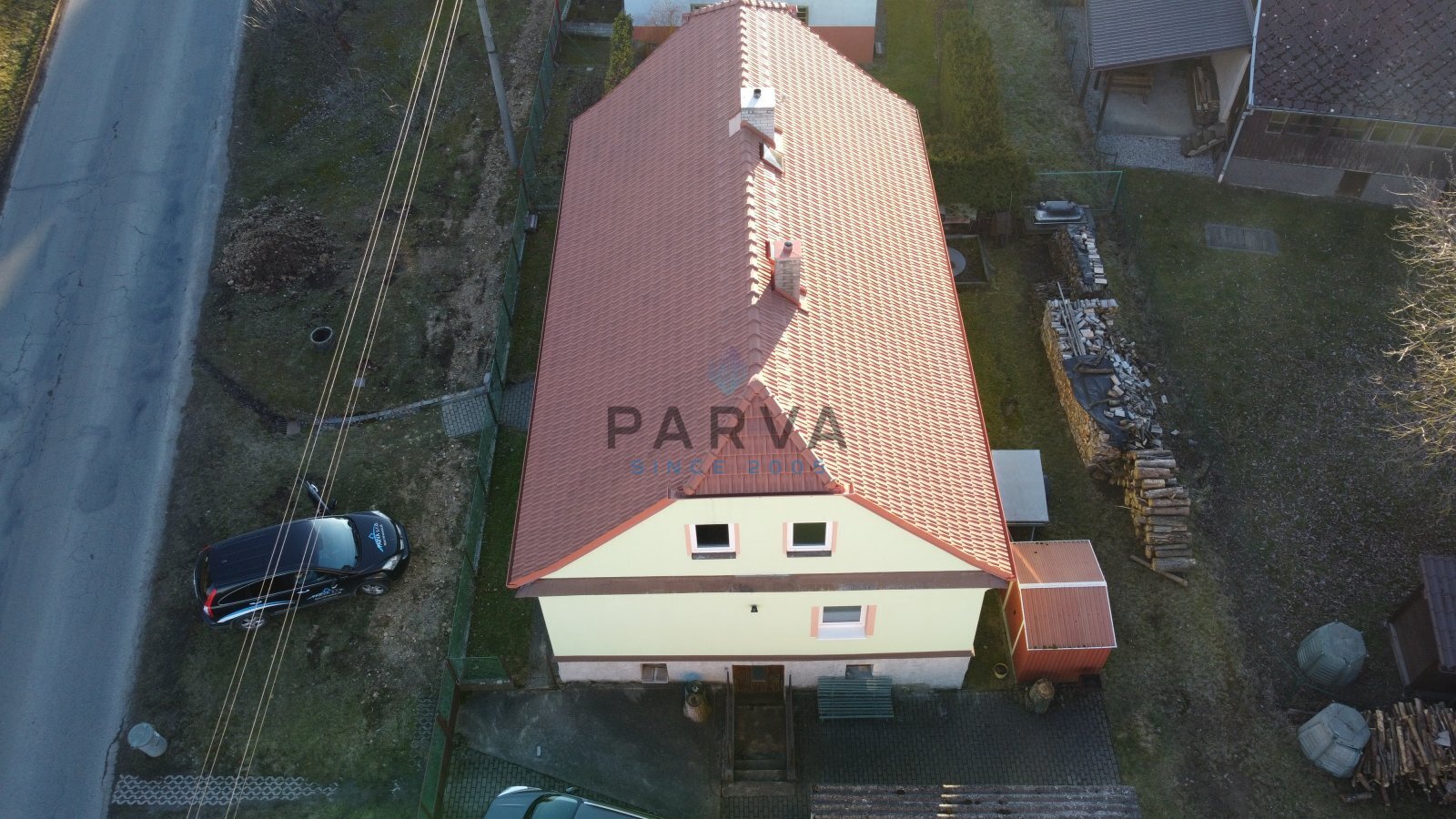 Ve smíšené stavbě domu ( kámen, cihla, vepřovice o tlouštce zdiva cca 70 cm) se nachází chodba ,vstup do půdního prostoru a vstup do sklepa , po levé straně ložnice a prostorný pokoj. Kuchyň s kuchyňskou linkou do tvaru L s imitací dřeva a sporákem . Obývací pokoj je též prostorný , dominantou pokoje jsou krbová kamna bez výměníku. Sociální zařízení - prostor na pračku , sprchový kout, umyvadlo zabudované ve skříni a WC který je součástí koupelny . Dům je částečně podsklepený.