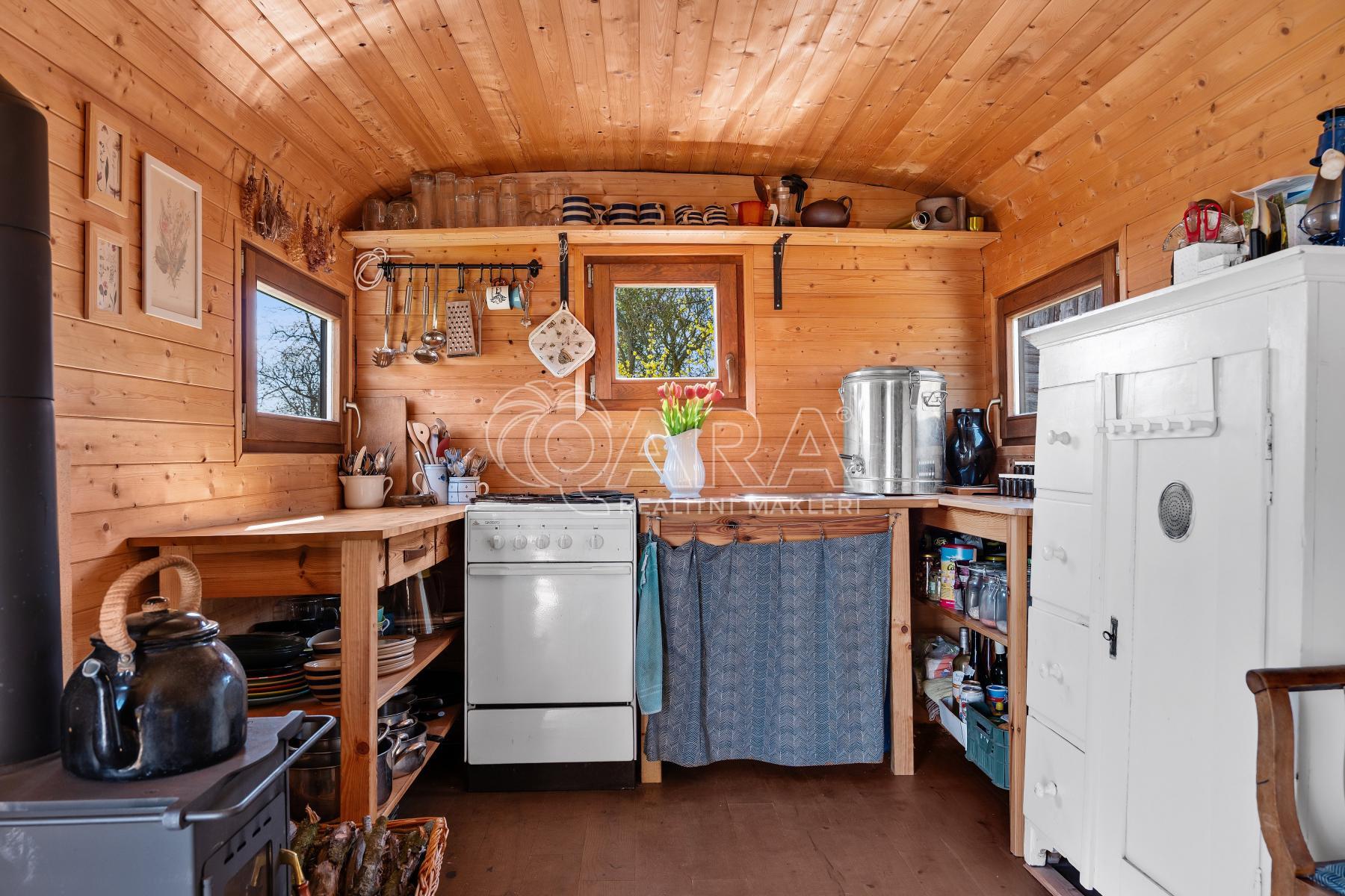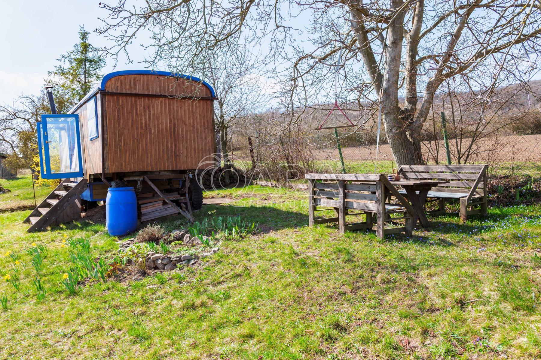 Maringotku, kterou vidíte na fotkách, získáváte k ceně pozemku jako bonus.