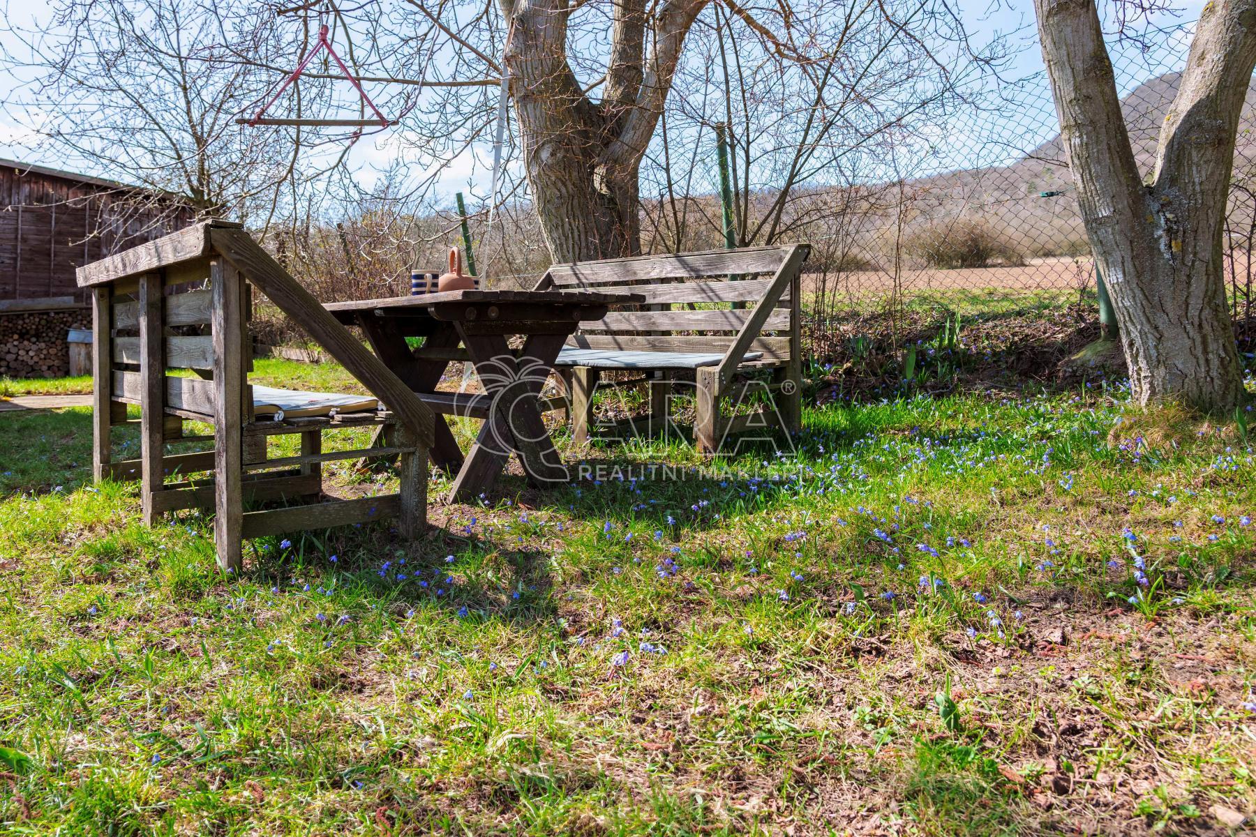 U autobusové zastávky ve Lhotce nad Labem se vydáte do kopce směrem na Lovoš a za pár minut jste na zahradě.