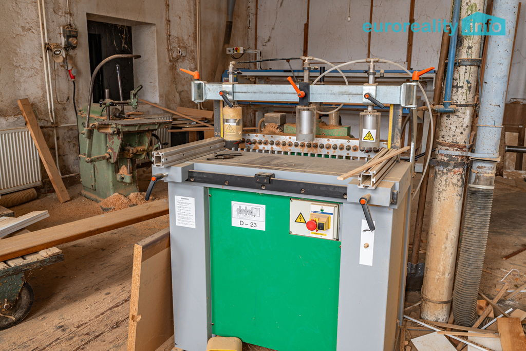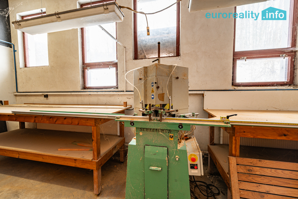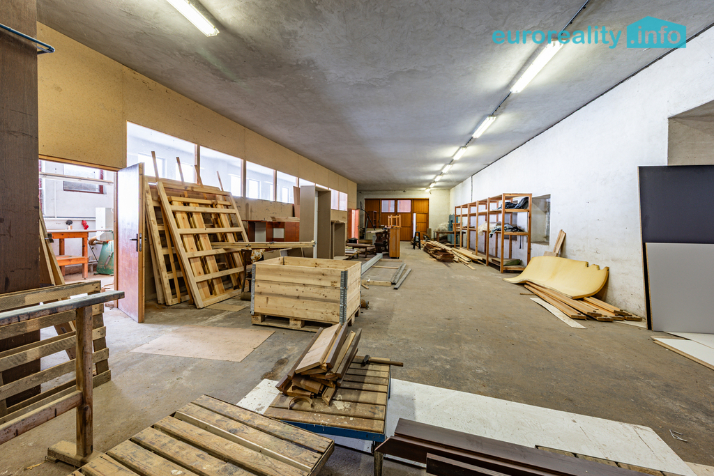 Samotný objekt disponuje celkovou užitnou plochou cca 1000 m2 a nabízí kompletní zázemí pro truhlářskou nebo jinou výrobní činnost. Součástí jsou rozsáhlé výrobní haly, dílny, sklady materiálu, manipulační prostory, technické zázemí, kanceláře i sociální zařízení. Dispozice objektu umožňuje plynulý výrobní proces od skladování materiálu přes zpracování až po finální kompletaci a expedici.