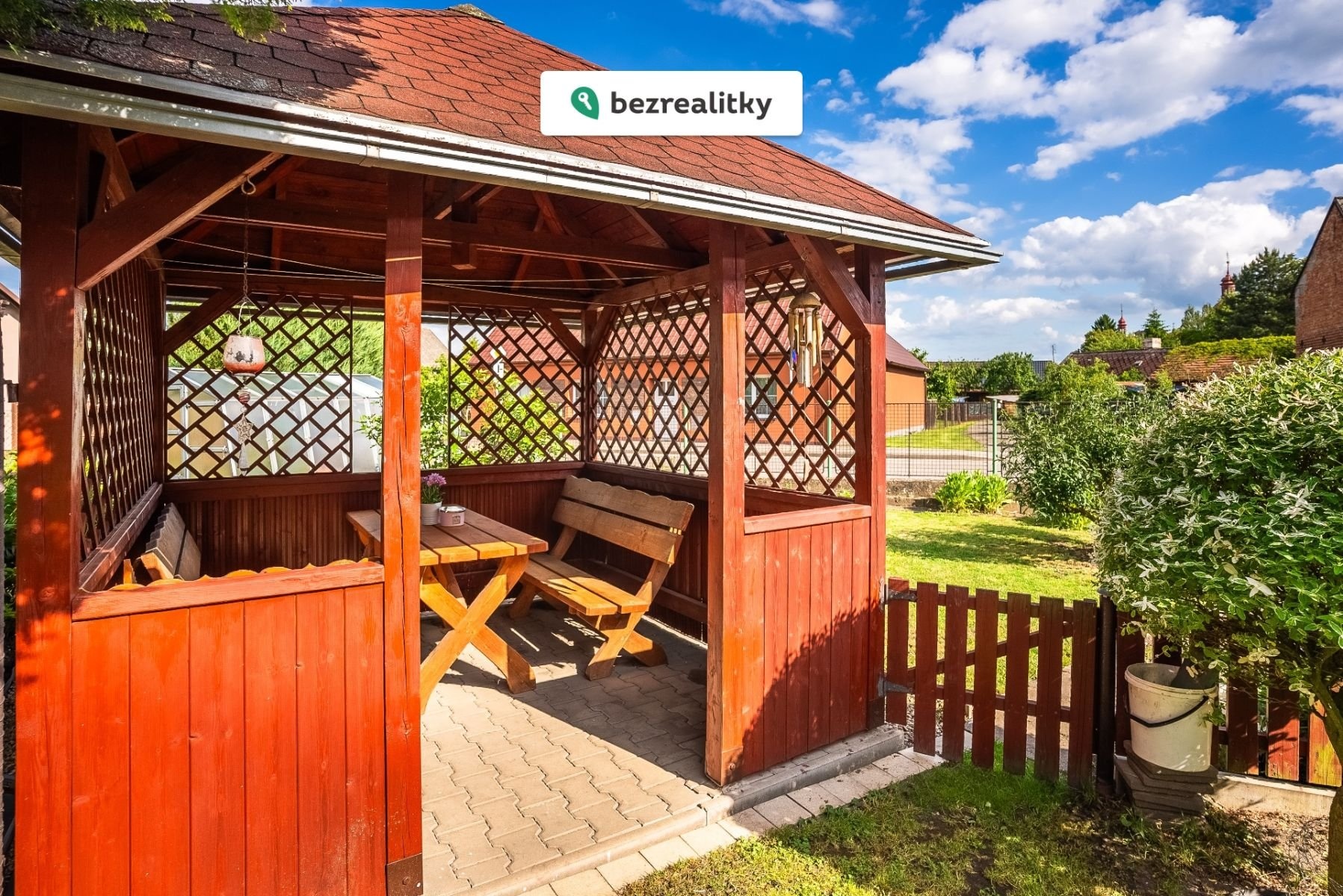 Další výhodou tohoto bydlení jsou venkovní prostory- velmi prakticky řešeny. K domu náleží jen menší zahrádka o ploše 253 m2, ale členitost a rozmístění jednotlivých částí Vám nabízí nejen relaxační část se zastřešenou pergolou a travnatou plochou, ale i místo pro chov drobných domácích zvířat jako slepic nebo králíků, a pokud jste vášniví zahradníci, nebojte, skleník i záhonky tu naleznete rovněž.