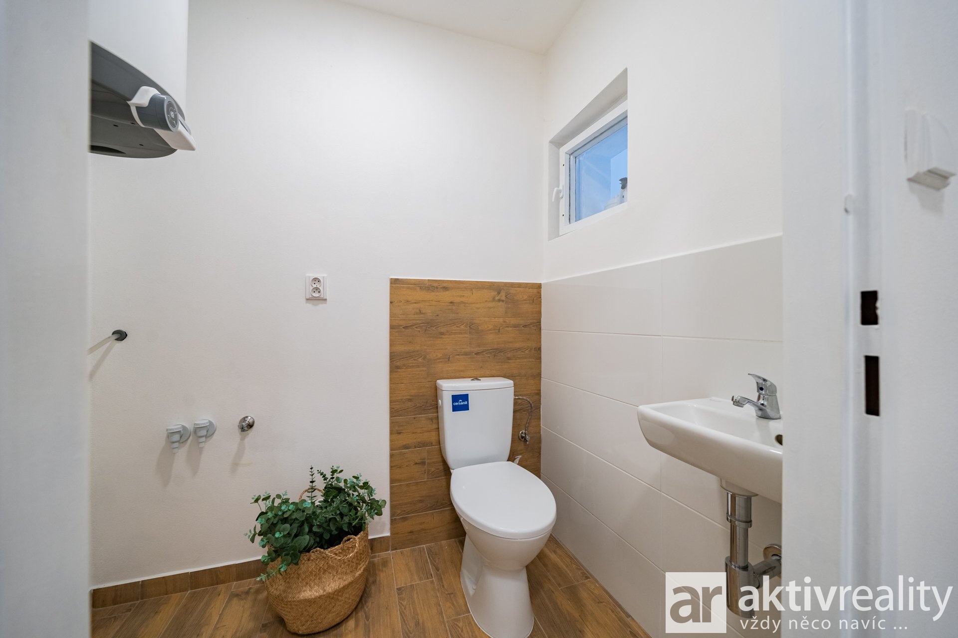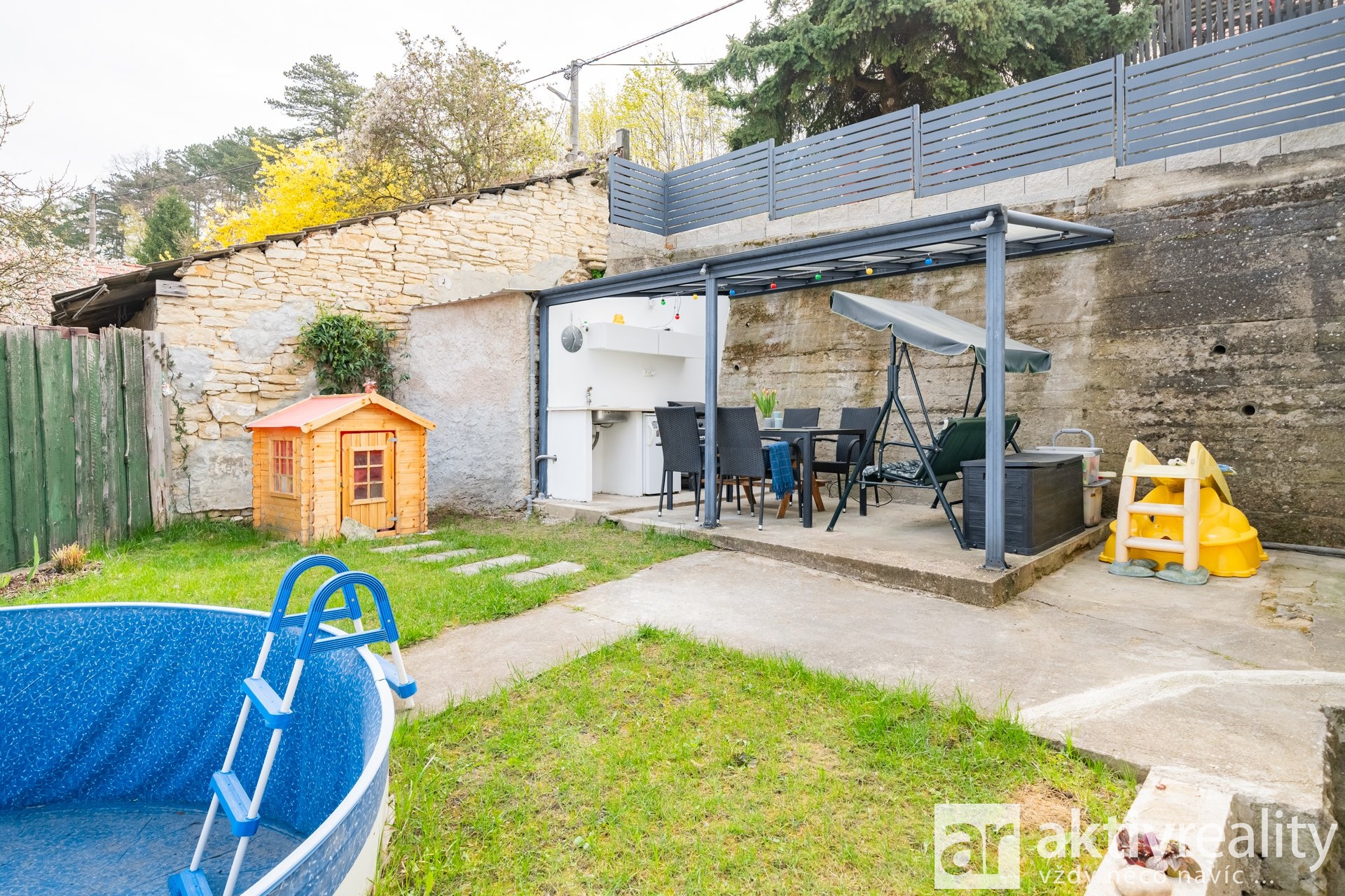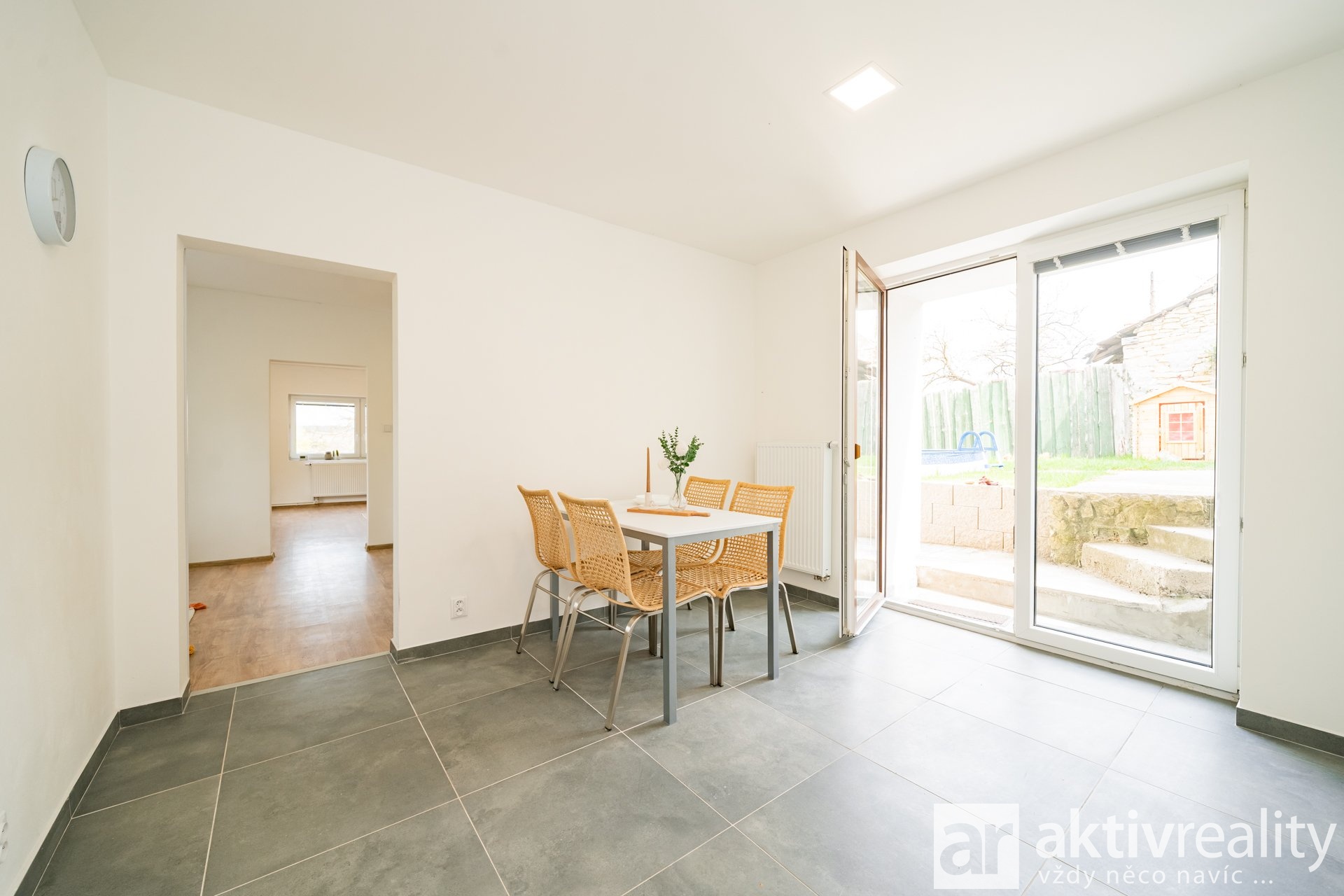 V přízemí domu se nachází prostorné 2+1 cca 70 m2. Z chodby se dostanete do kuchyně, kde jsou připravené rozvody na novou kuchyň a vstup na terasu, kde je plně vybavená letní kuchyň ( lednice, dřez, gril ) se zastřešenou terasou připravená k relaxaci. Dále je zde ložnice a pokoj, který lze využít například jako dětský nebo pracovní, koupelna s toaletou, technická místnost a sklep.