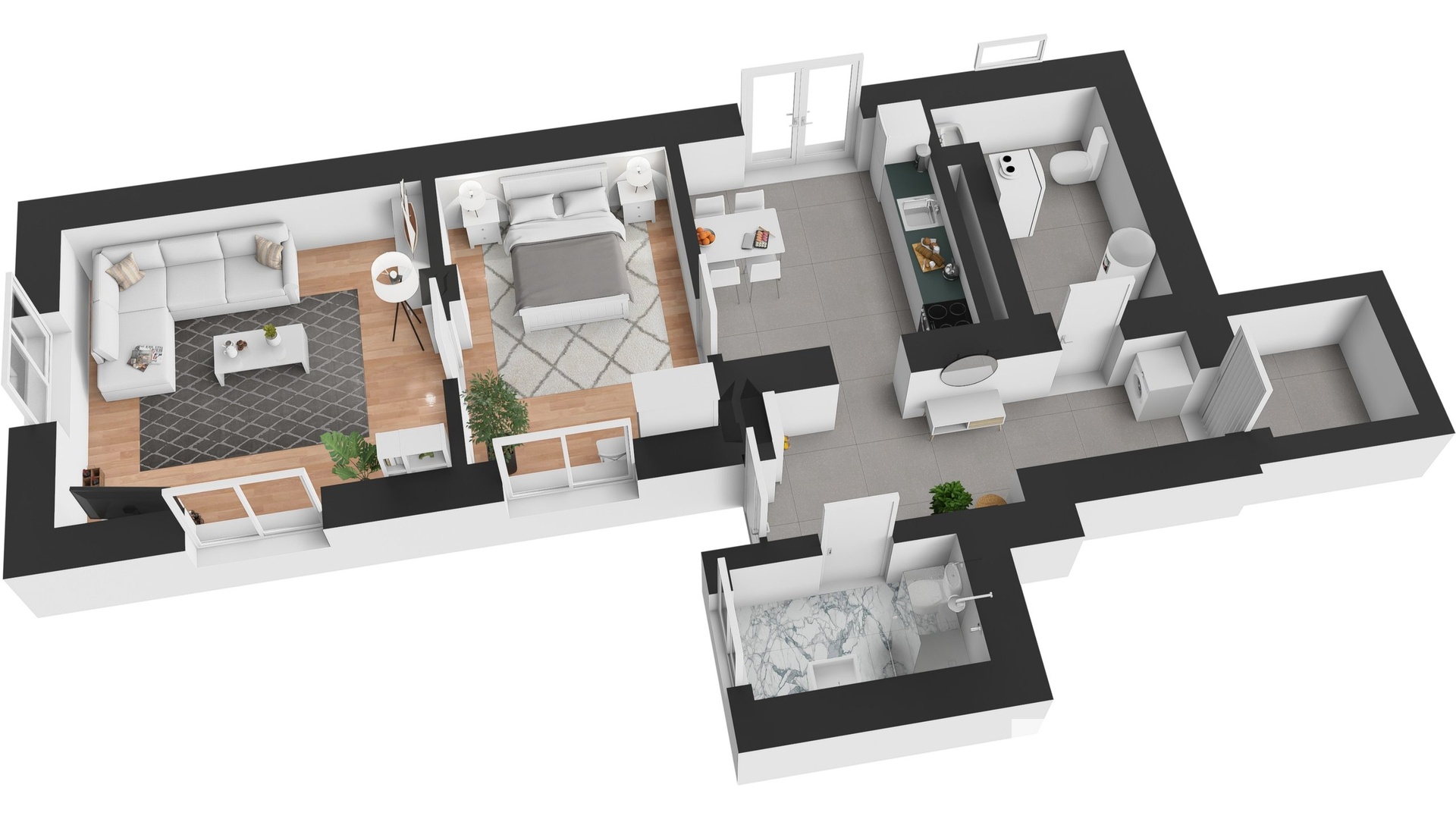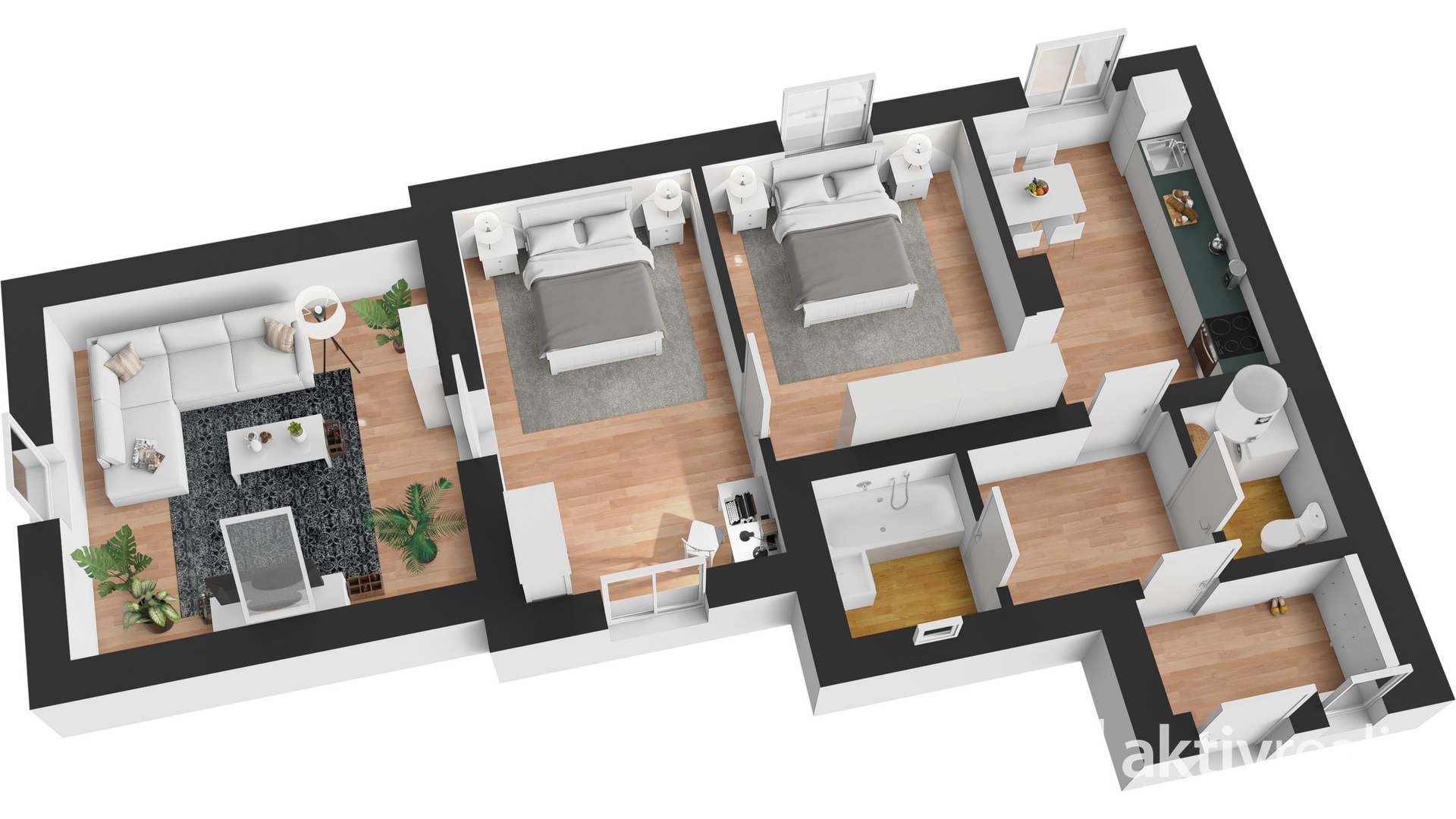 Dispozice domu je znázorněná v půdorysu a celý dům si můžete projít prohlídkou v matterportu.