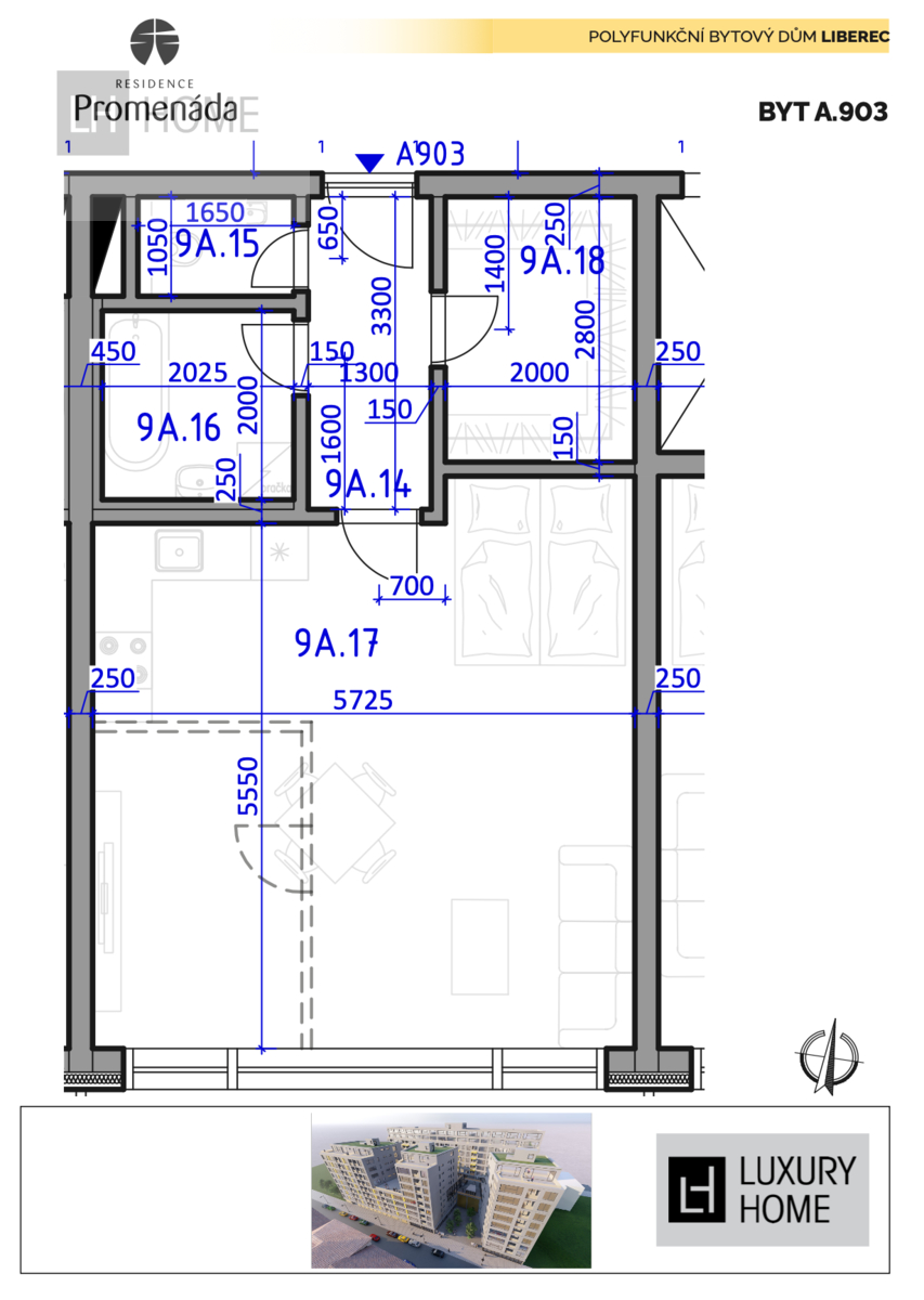 Nabízíme prodej bytu 2+kk o výměře 53,46 m2 vč. příček + balkón 4,4 m2 v projektu Residence Promenáda.