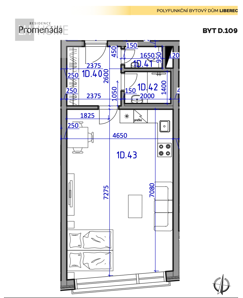 Nabízíme prodej bytu 2+kk o výměře 53,46 m2 vč. příček + balkón 4,4 m2 v projektu Residence Promenáda.