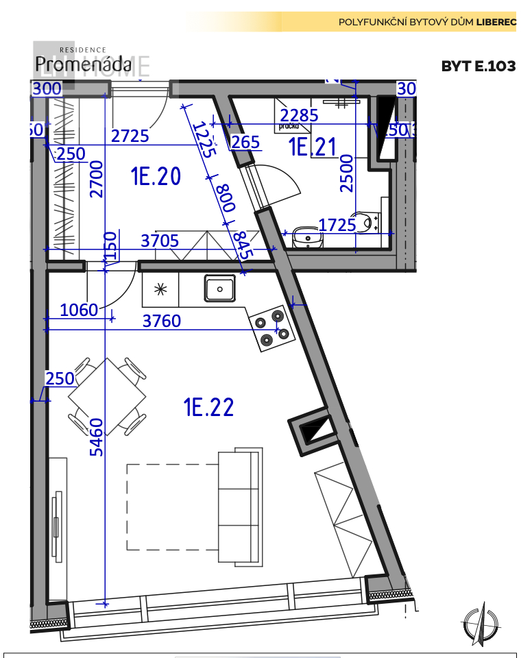 Nabízíme prodej bytu 2+kk o výměře 53,46 m2 vč. příček + balkón 4,4 m2 v projektu Residence Promenáda.