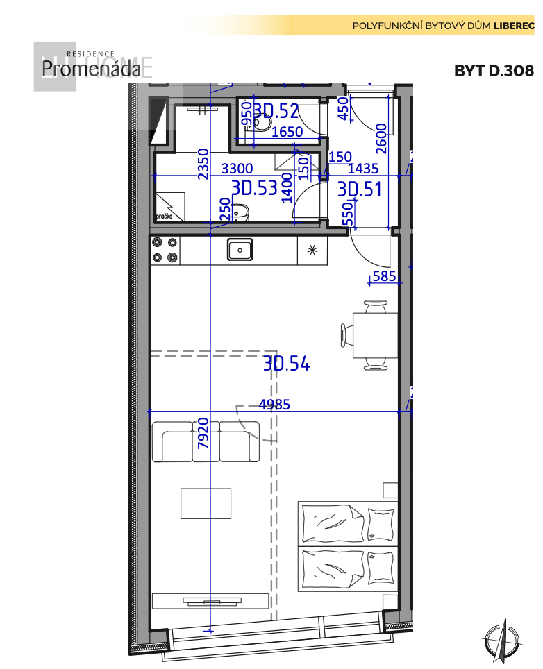 Nabízíme prodej bytu 2+kk o výměře 53,46 m2 vč. příček + balkón 4,4 m2 v projektu Residence Promenáda.
