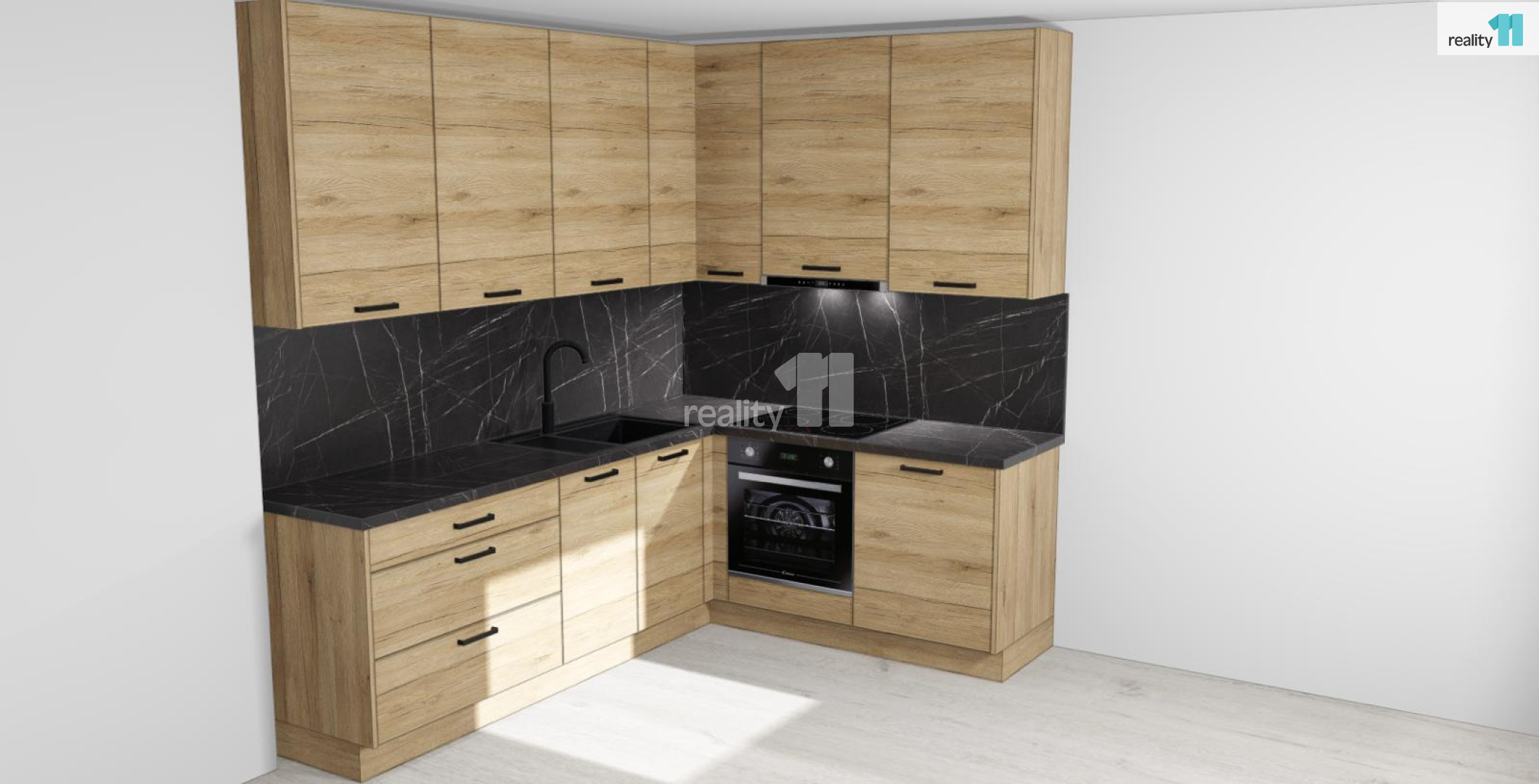 Technické vybavení: Izolační trojskla VEKRA, podlahy laminátové, hnědé obložkové zárubně a dveře, nízká energetická náročnost domu (třída B), dům je zateplen. Byt bude vybaven moderní kuchyňskou linkou dle uvedené vizualizace, což umožňuje budoucímu majiteli rychlé nastěhování, případně výhodu při budoucím pronájmu, v koupelně vana, místo pro pračku a sušičku, WC.