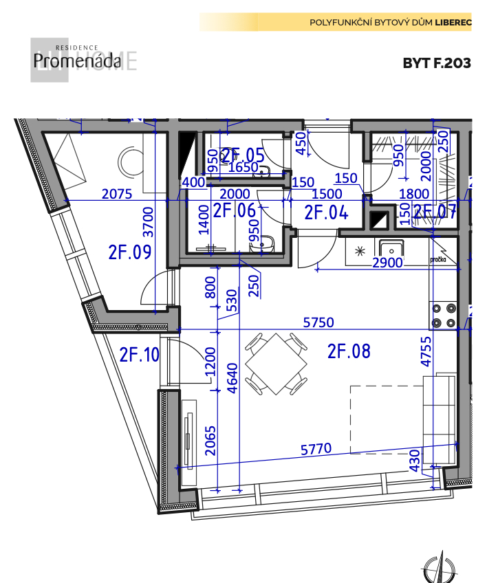 Nabízíme prodej bytu 2+kk o výměře 53,46 m2 vč. příček + balkón 4,4 m2 v projektu Residence Promenáda.