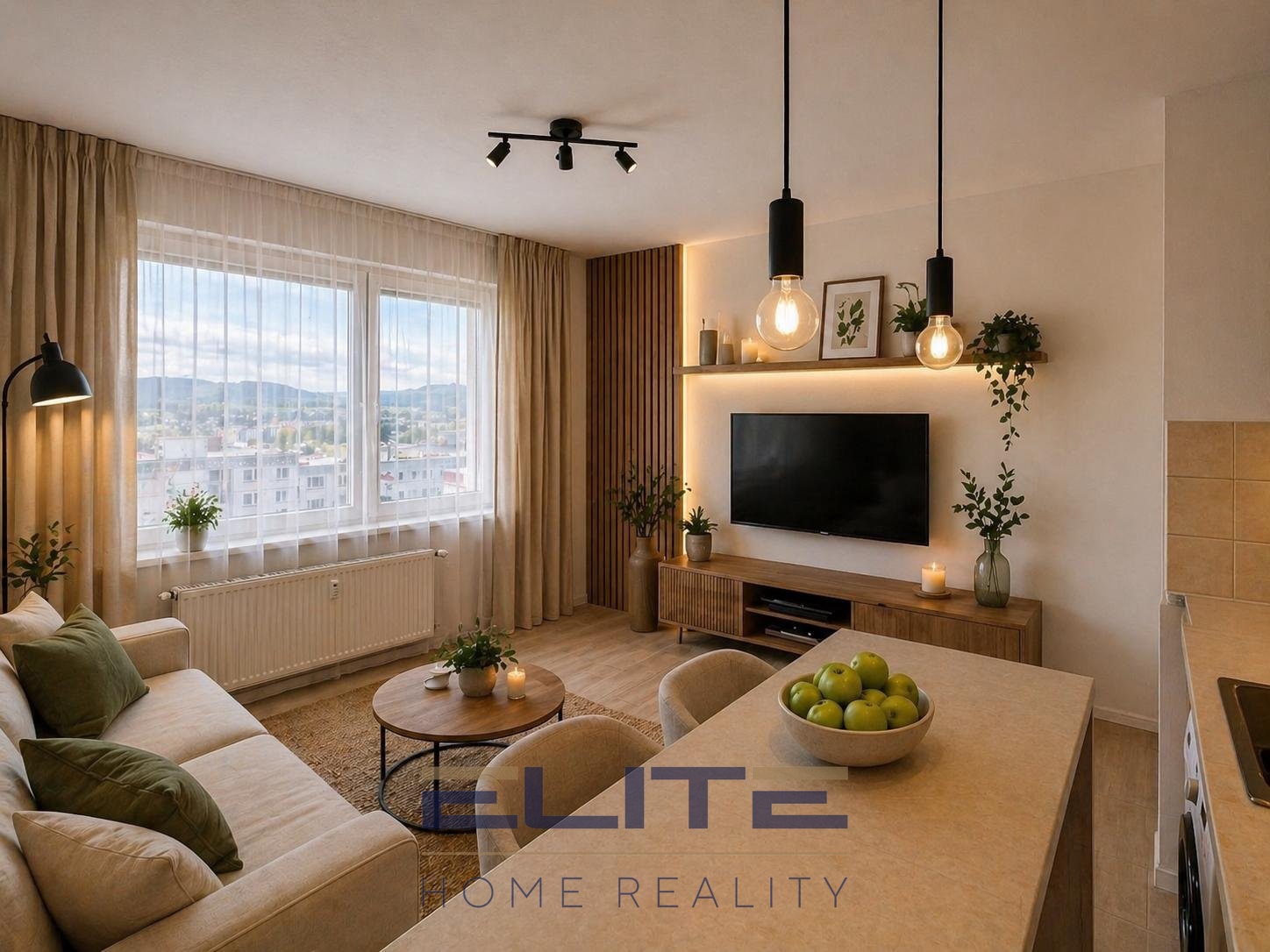 Byt prošel rekonstrukcí a disponuje zděným jádrem s vanou, obývacím pokojem s kuchyňskou linkou s prostorovým ostrůvkem a ložnicí se vstupem na lodžii. Díky umístění v nejvyšším patře nabízí dostatek soukromí, klid a především krásný otevřený výhled na Ještěd a okolí. Orientace na severozápad zajišťuje příjemné světlo během dne i atraktivní večerní atmosféru. Lodžie poskytuje příjemný prostor k relaxaci. K bytu náleží sklepní kóje.