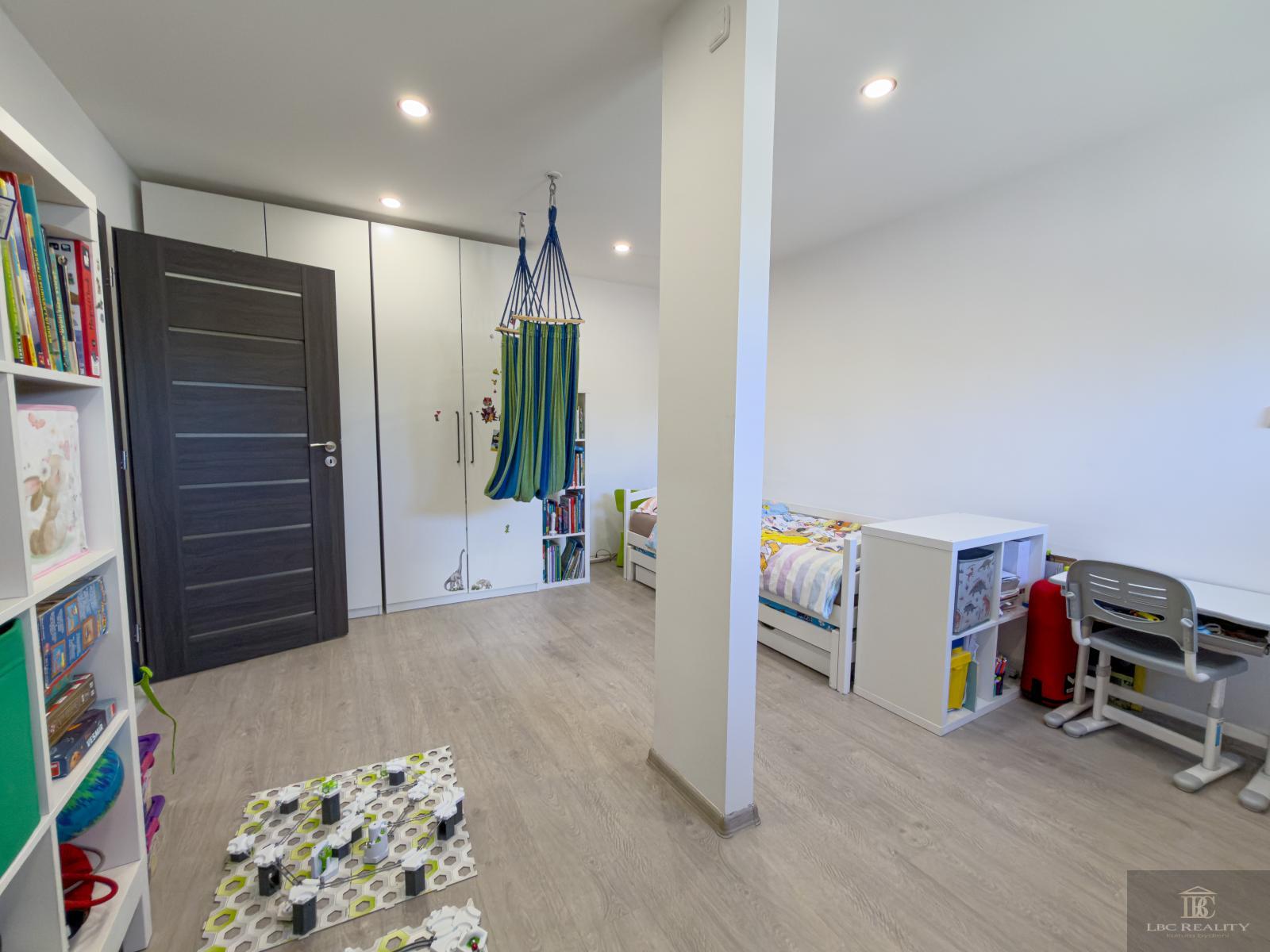 Byt je velmi prostorný, vzdušný a světlý, s možností úpravy dispozice (např. zrušení průchodu mezi ložnicí a dětským pokojem). V současnosti je udržován v nadstandardním stavu.