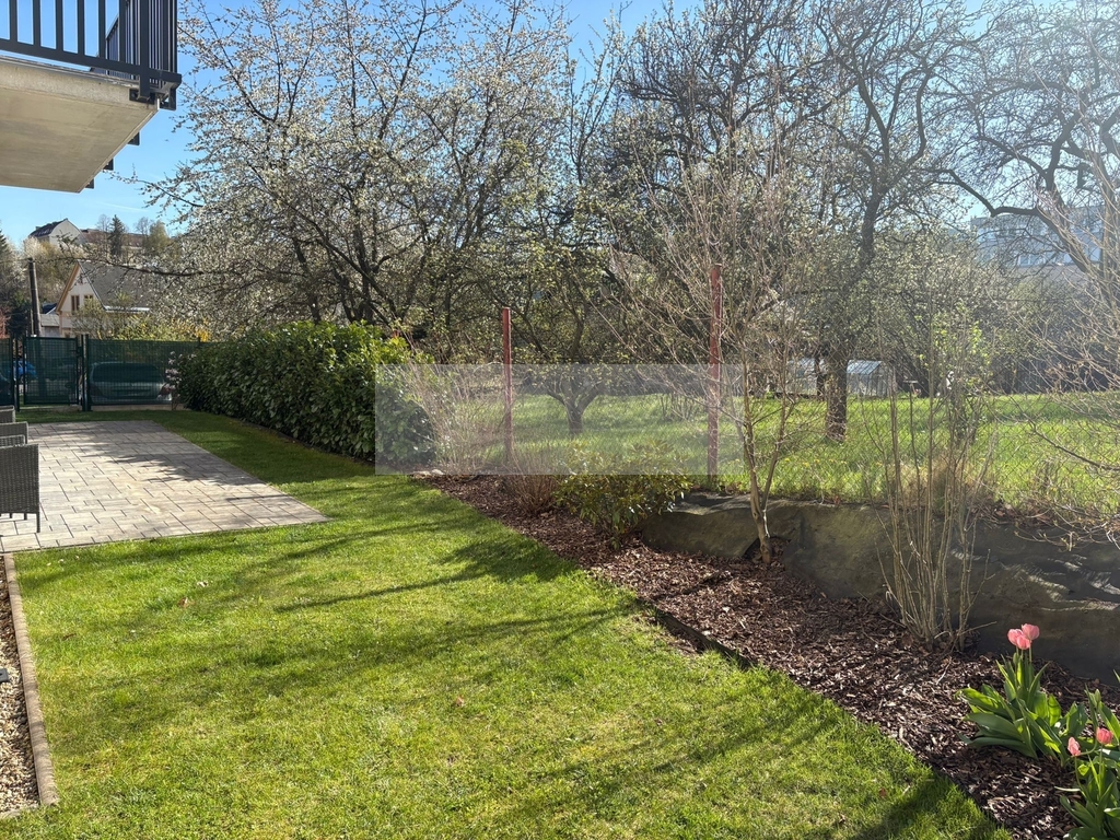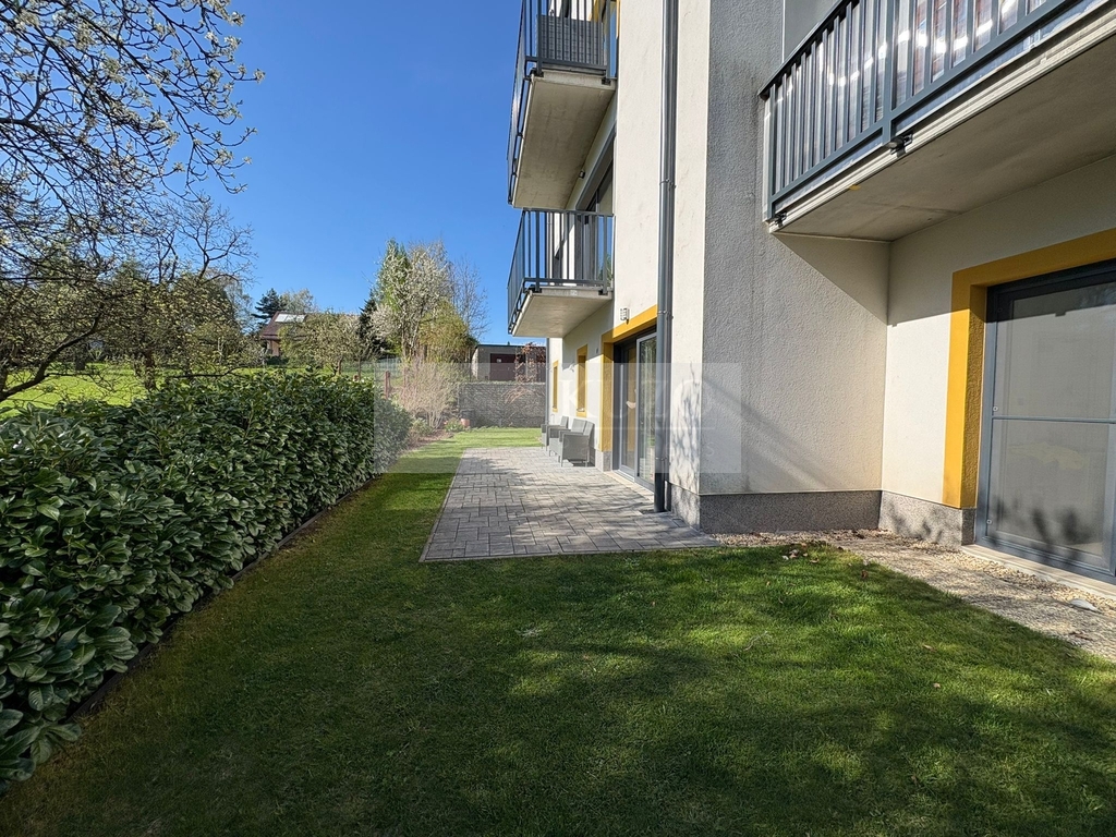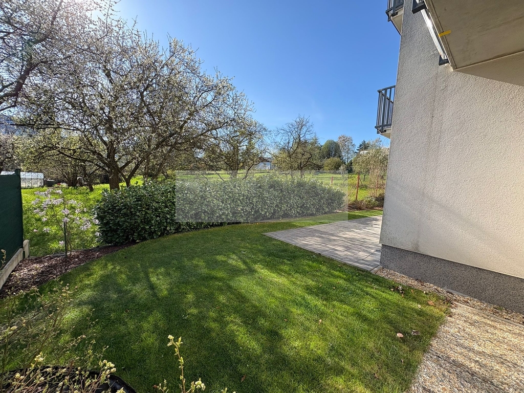 Zahradu tvoří částečně travnatá plocha a částečně dlažba v prostoru terasy a zpevněný chodník, vedoucí až k vstupní brance k parkovišti. Pozemek je kompletně oplocen. Je možné používat hlavní vchod, ale i soukromý vstup z parkoviště.