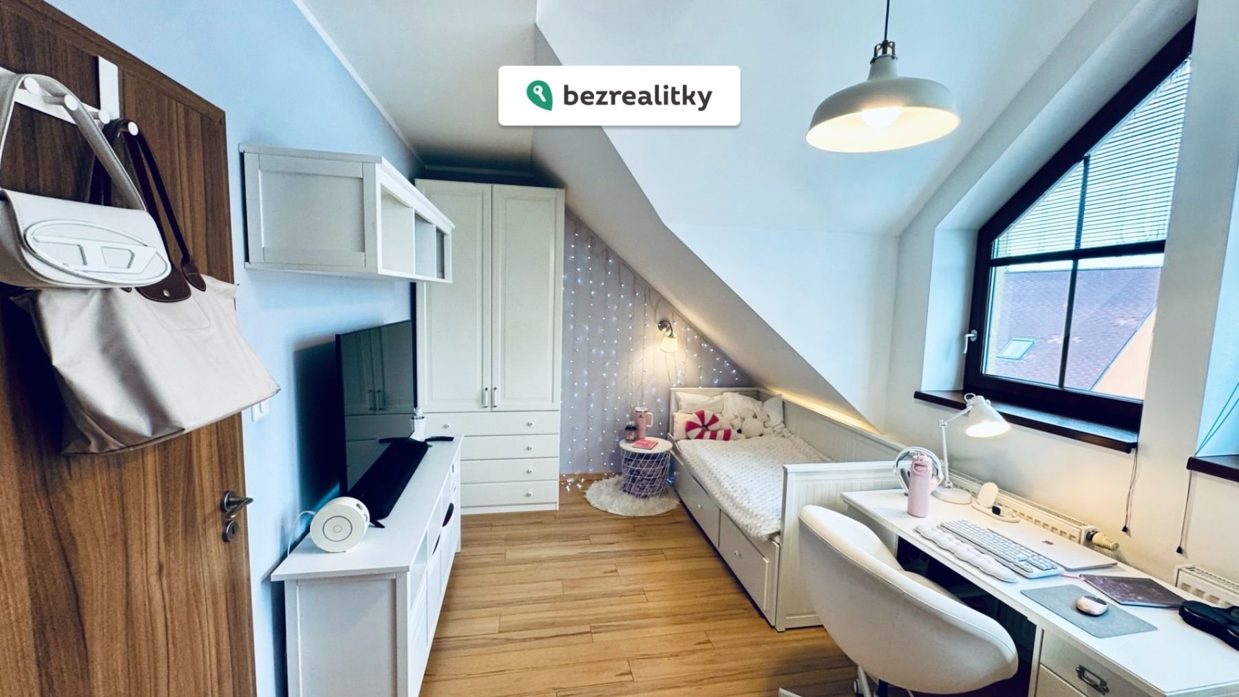 V patře se nachází tři samostatné pokoje, které poskytnou soukromí celé rodině, koupelna s vanou, sprchovým koutem a toaletou. Půda nabízí další úložný prostor.