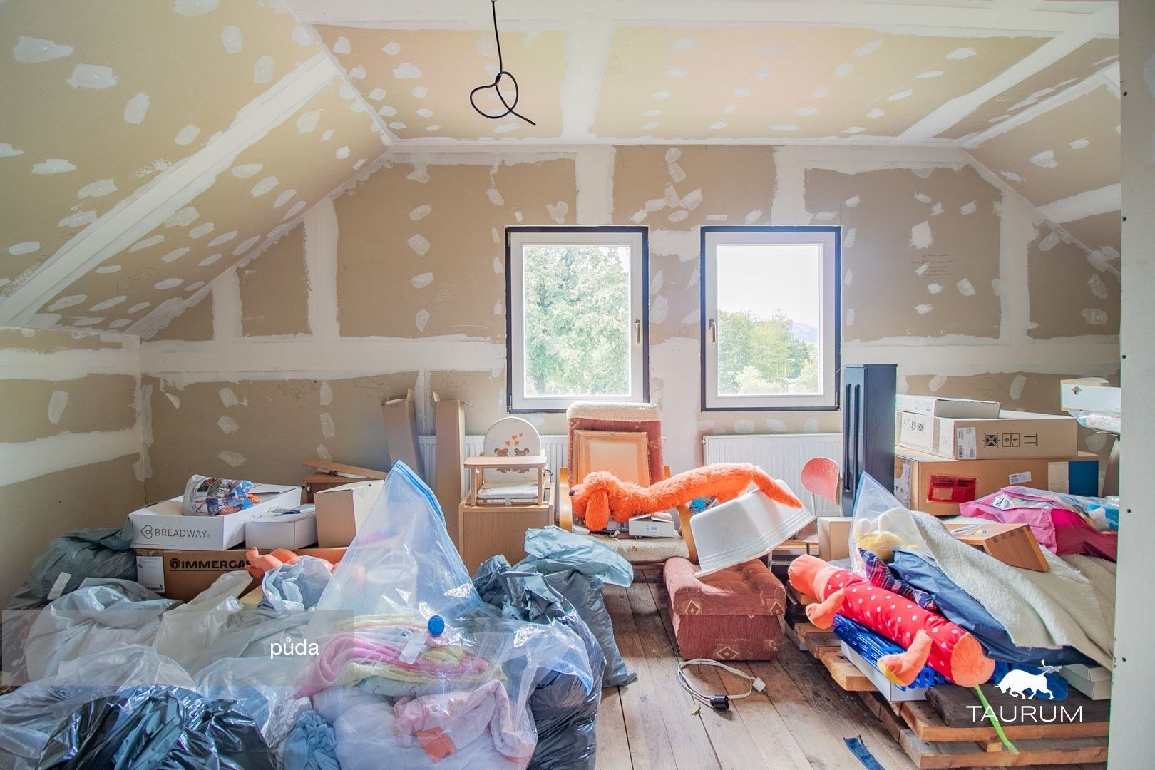 > okna dřevěná eurookna, vakuovaná s 2 skly (v technickém suterénu jsou okna plastová Vekra s 2 skly z roku 2014)