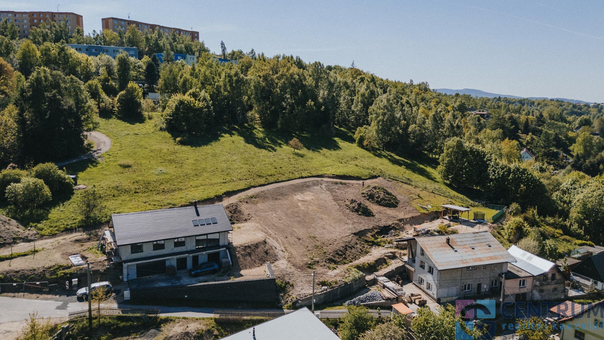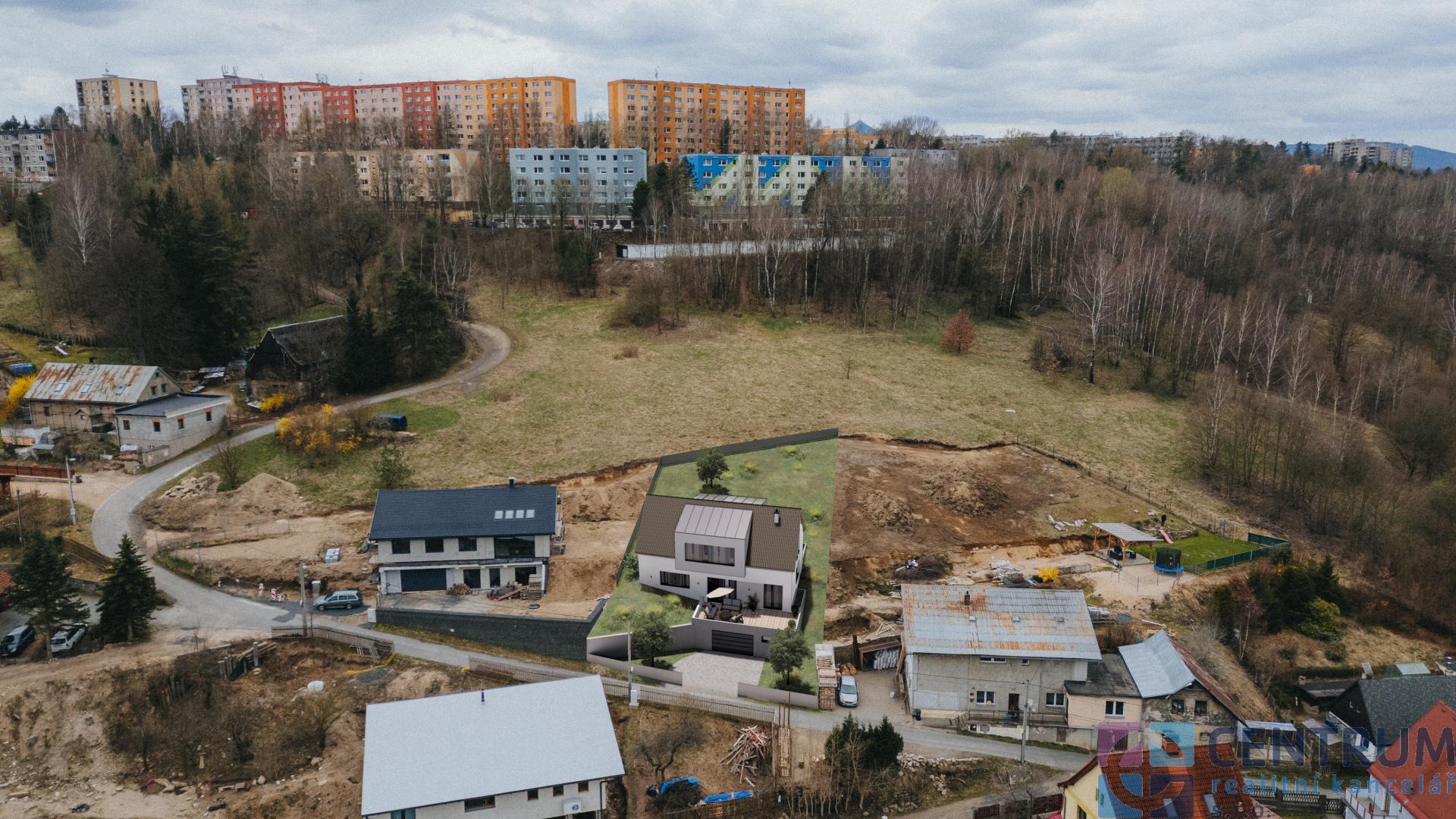 Na pozemku proběhly základní zemní práce, na které lze navázat. Výhoda svažitého reliéfu spočívá zejména ve využití výhledu do údolí a lesů Harcova. Stavební inspirací může být vedlejší novostavba, od jejíž stavitelů můžeme poskytnout odborné posudky (geologie, studna, ...) a kontakty na prověřené dodavatele. Architekt pro tento pozemek vypracoval vizualizace dvou potenciálních záměrů, které si můžete prohlídnout ve fotogalerii: