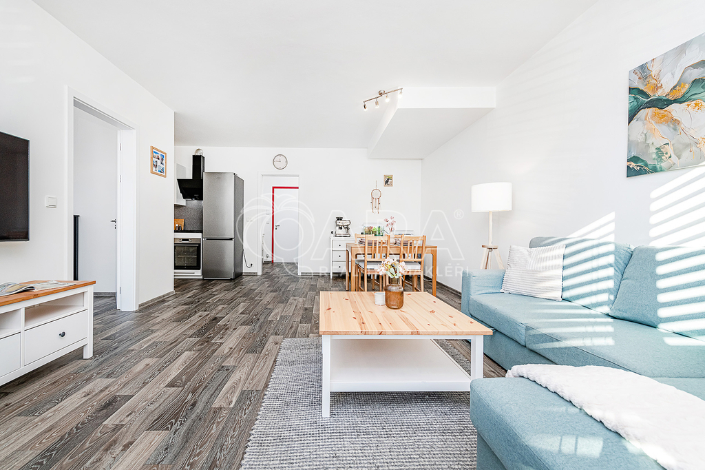 Nabízím k prodeji prostorný a světlý byt 2+kk o nadstandardní výměře 63 m² se sklepní kójí (+ cca 4 m²), umístěný ve 3. nadzemním podlaží moderní novostavby Rezidence Nábřeží z roku 2022, přímo v centru Liberce. Součástí prodeje je i venkovní parkovací stání, které uvidíte pod okny bytu.