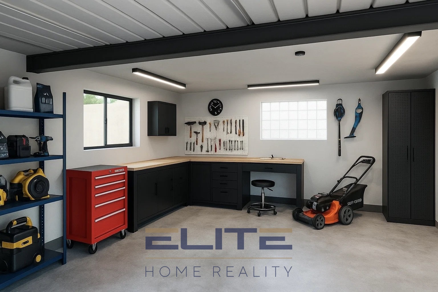 Na zahradě se nachází zděná garáž s dílnou a skladem.
