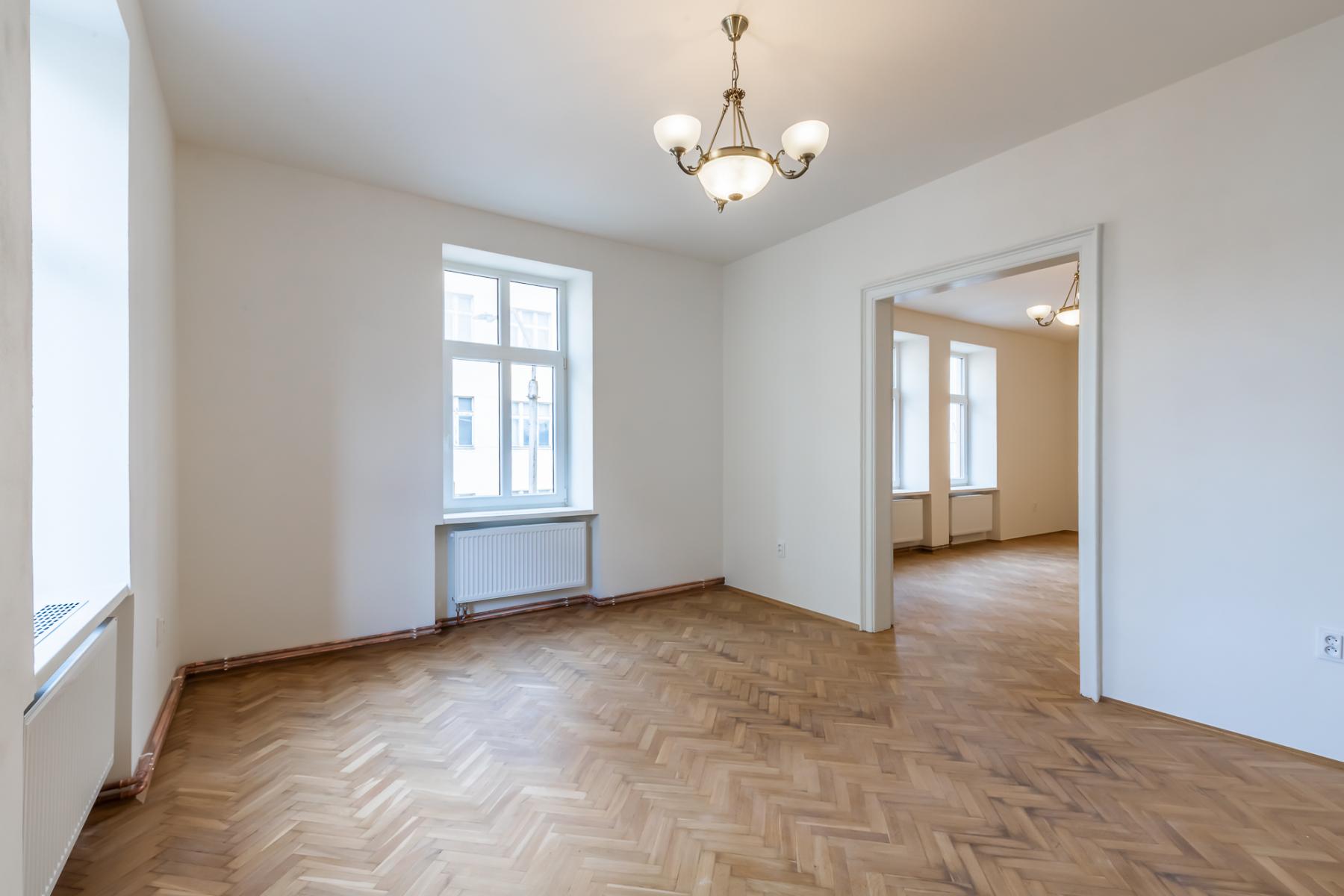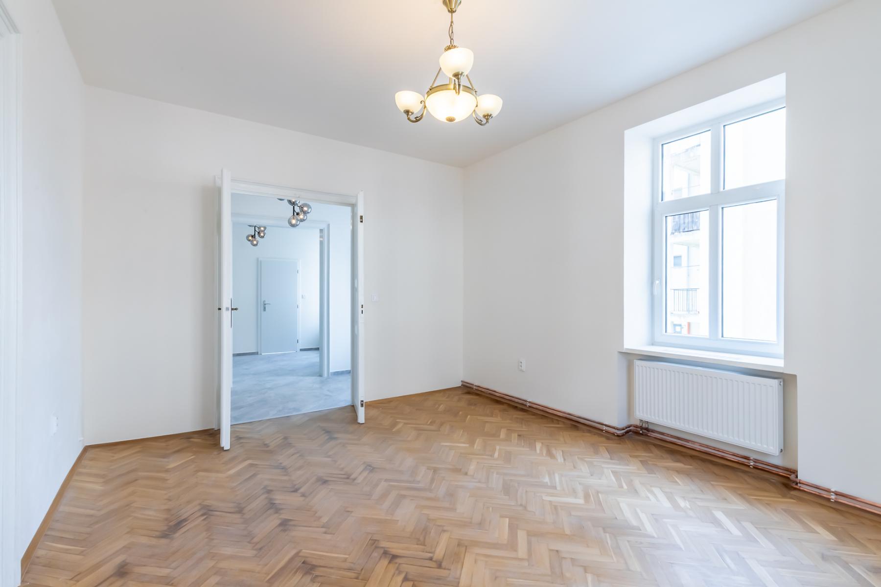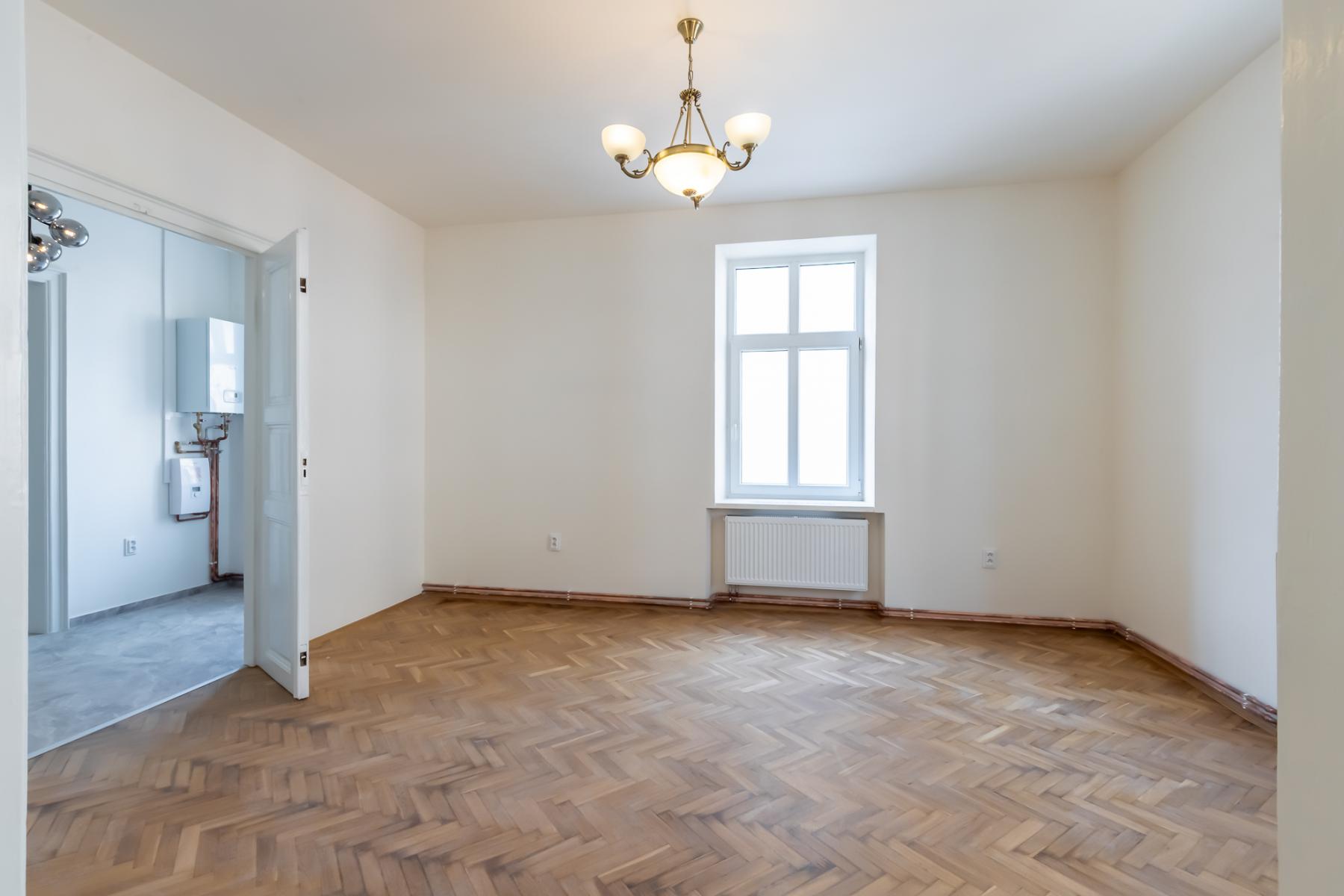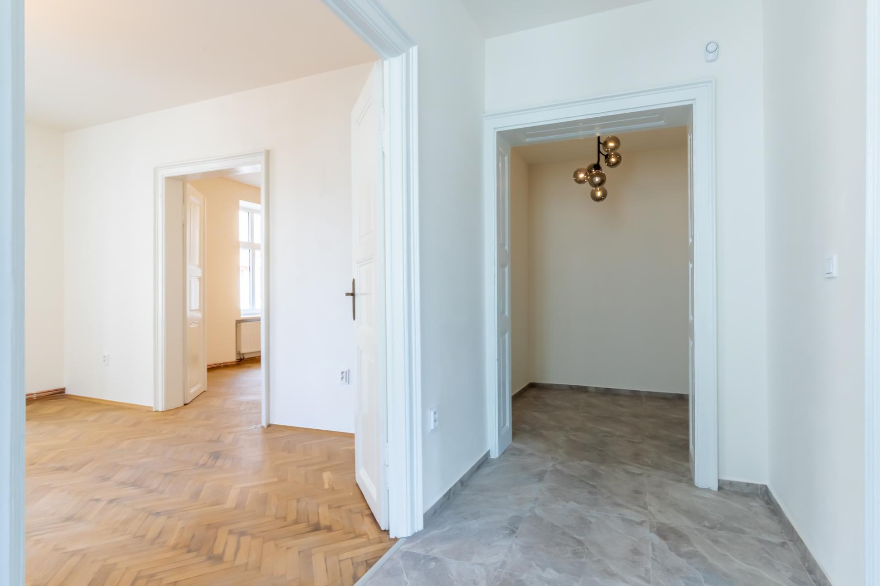 Byt prošel rozsáhlou a pečlivě provedenou rekonstrukcí, která klade důraz na moderní standardy a nadčasový design. Interiér je vyhotoven v čistých liniích a neutrálních tónech, které poskytují ideální základ pro budoucí zařízení podle Vašeho vkusu. V obytných místnostech byly zrenovovány kvalitní podlahy z dubového a bukového masivu, nové omítky a výmalby, a v celém bytě byly instalovány nové rozvody elektřiny, vody i topení. Komfortní vytápění zajišťují moderní vlastní plynový kotel, který kombinuje účinnost s nízkými provozními náklady.
