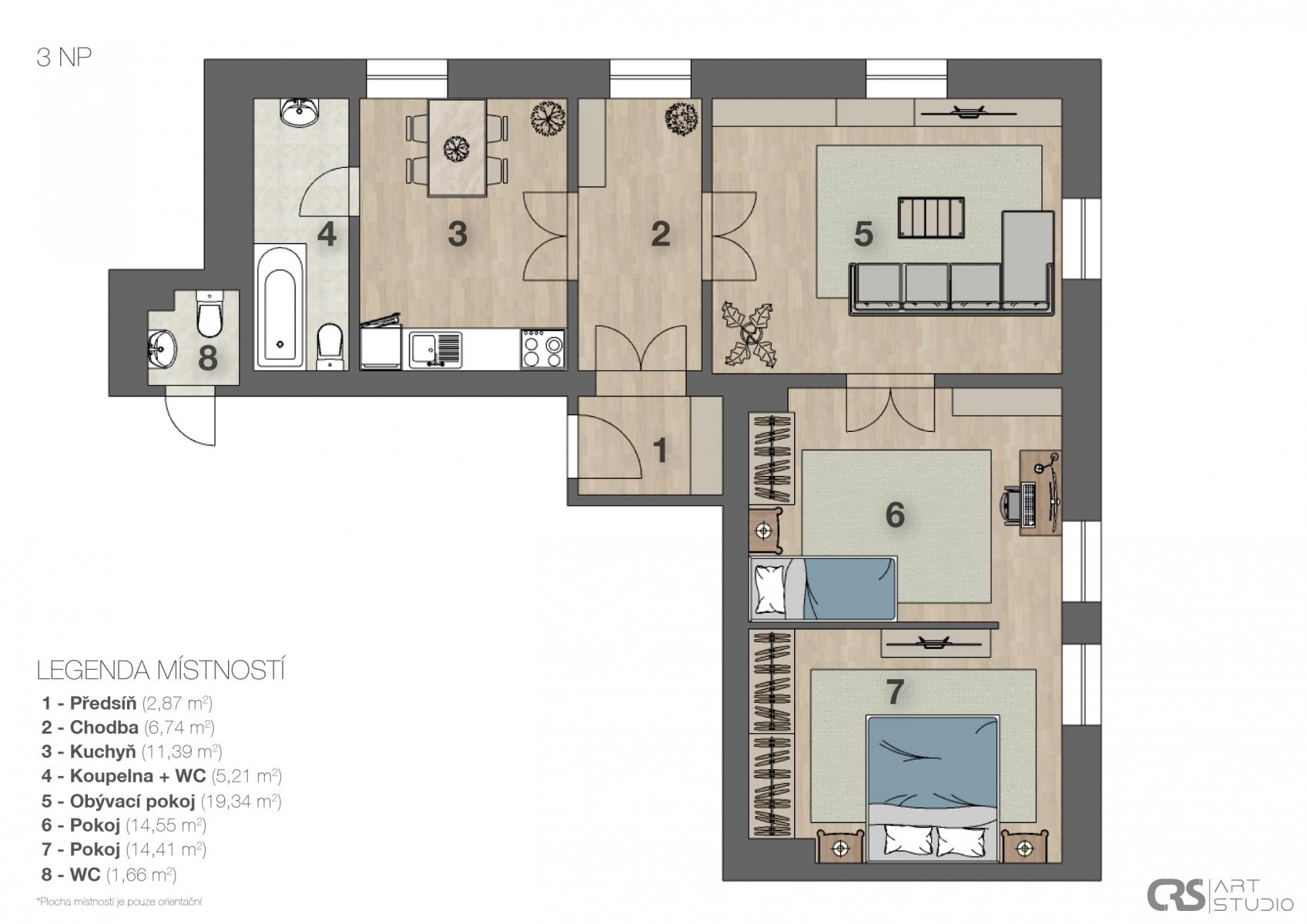 Součástí nabídky je rovněž kompletně připravená instalace pro kuchyňskou linku vyvedené přívody elektřiny, vody a odpadu umožňují okamžitou montáž bez dalších stavebních zásahů. A pokud si přejete, rádi Vám s výběrem i samotnou realizací kuchyňské linky pomůžeme. Na přiložených vizualizacích, upravených pomocí umělé inteligence, si můžete prohlédnout, jak by mohl byt vypadat po zařízení získáte tak jasnější představu o jeho potenciálu.