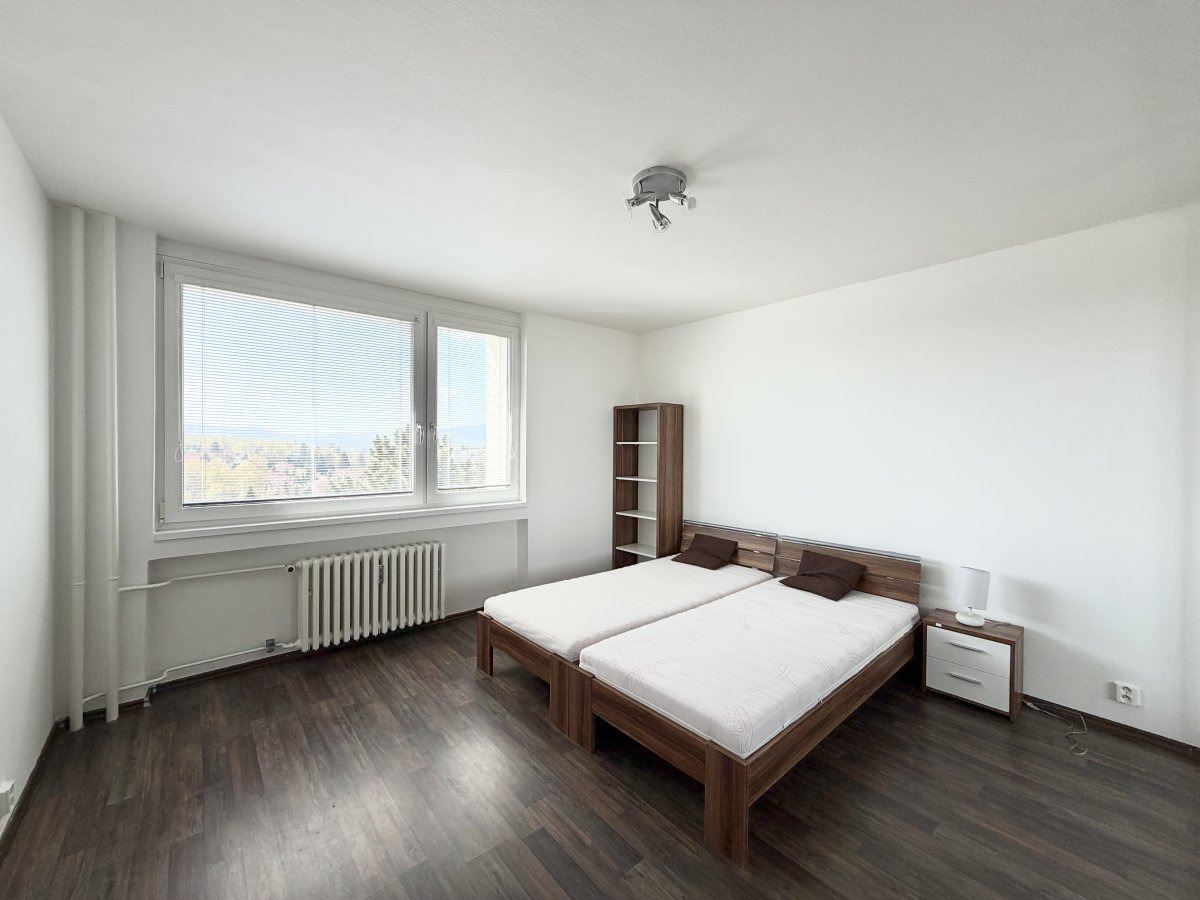 K dlouhodobému podnájmu nabízíme krásný byt o dispozici 2+kk v oblíbené lokalitě Aloisina Výšina. Byt o celkové výměře 57 m2 se nachází v 6. podlaží panelového domu s výtahem. K bytu patří i prostorný balkon a sklepní kóje.
