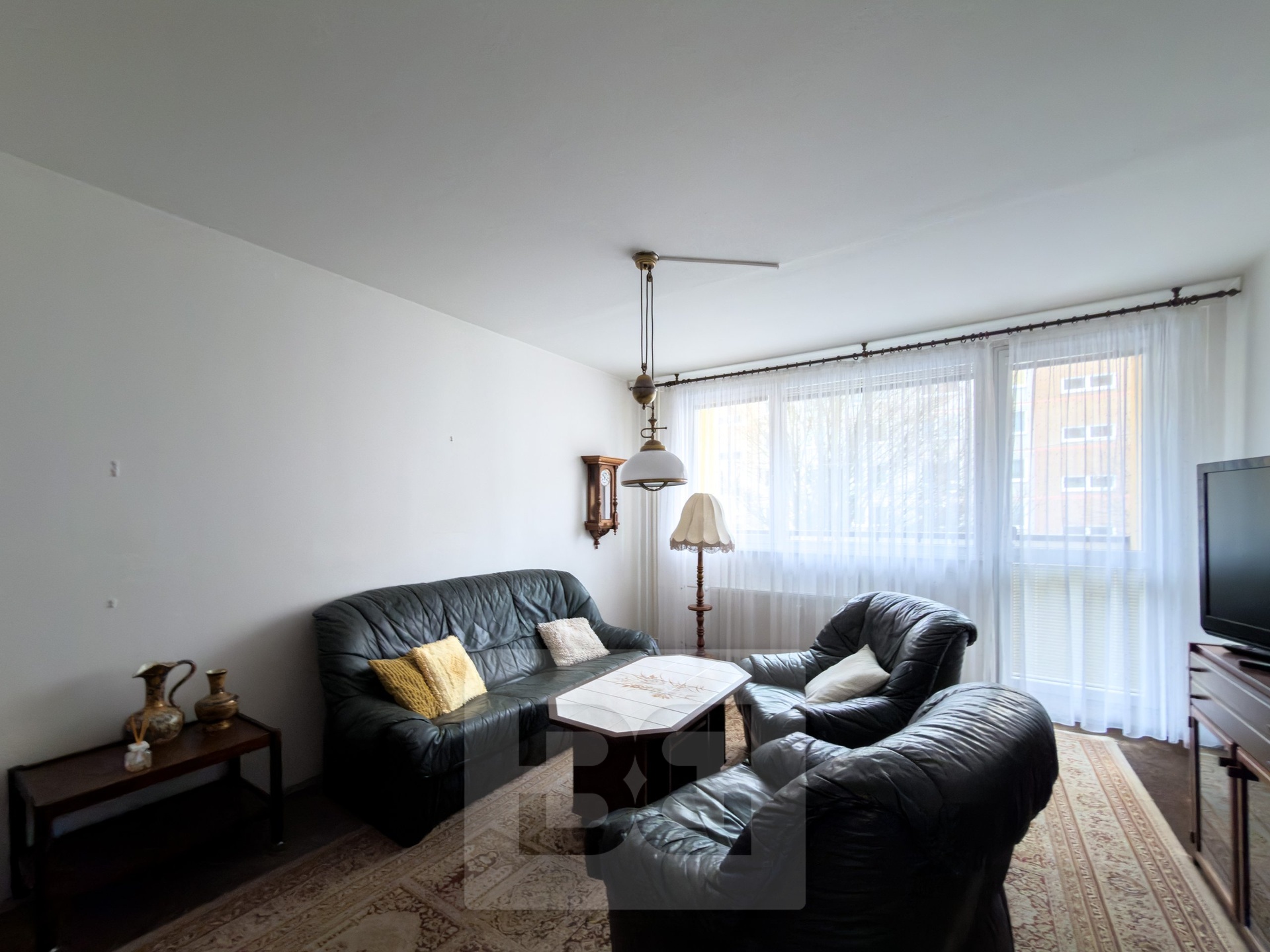 Dispozičně byt nabízí samostatnou kuchyň, obývací pokoj a dvě další obytné místnosti.
