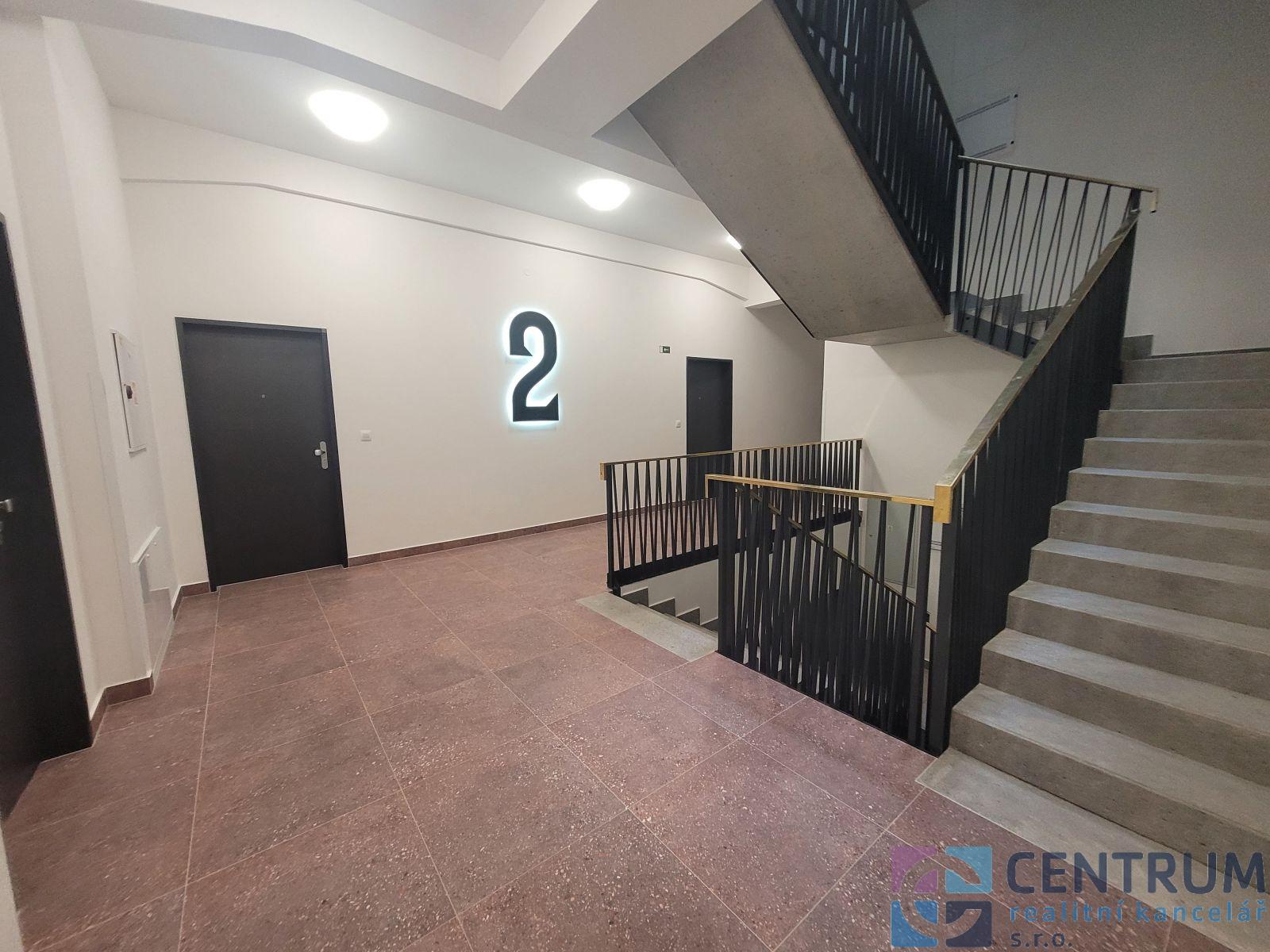 Byt je světlý a slunný (JZ), elegantní interiér je tvořen vstupní chodbou (8.4 m2) s vestavěnou skříní, vzdušnou prostornou obytnou kuchyní (32 m2) se vstupem na balkón. Je zde designová kuchyňská linka s vestavěnými spotřebiči - indukční varná deska, horkovzdušná trouba, microvlnná trouba, myčku nádobí (45 cm). Dále je zde prostorná ložnice (13.9 m2), moderní koupelna (4.3 m2) se sprchovým koutem a místem na pračku i sušičku, samostatná závěsná toaleta (1.3 m2). Vytápění celého bytu je řešeno podlahovým vytápěním v kombinaci s rekuperací. Kvalitní interiérové bezfalcové dveře a vinylové podlahy. Nájemné od 1.6.2026 vč. parkovacího místa - 20.000,-Kč + kompletní služby vč. elektřiny 3.800,-Kč / 2 osoby + internet (ANET optický kabel) na vlastní smlouvu. Vratná kauce 54.000,-Kč.