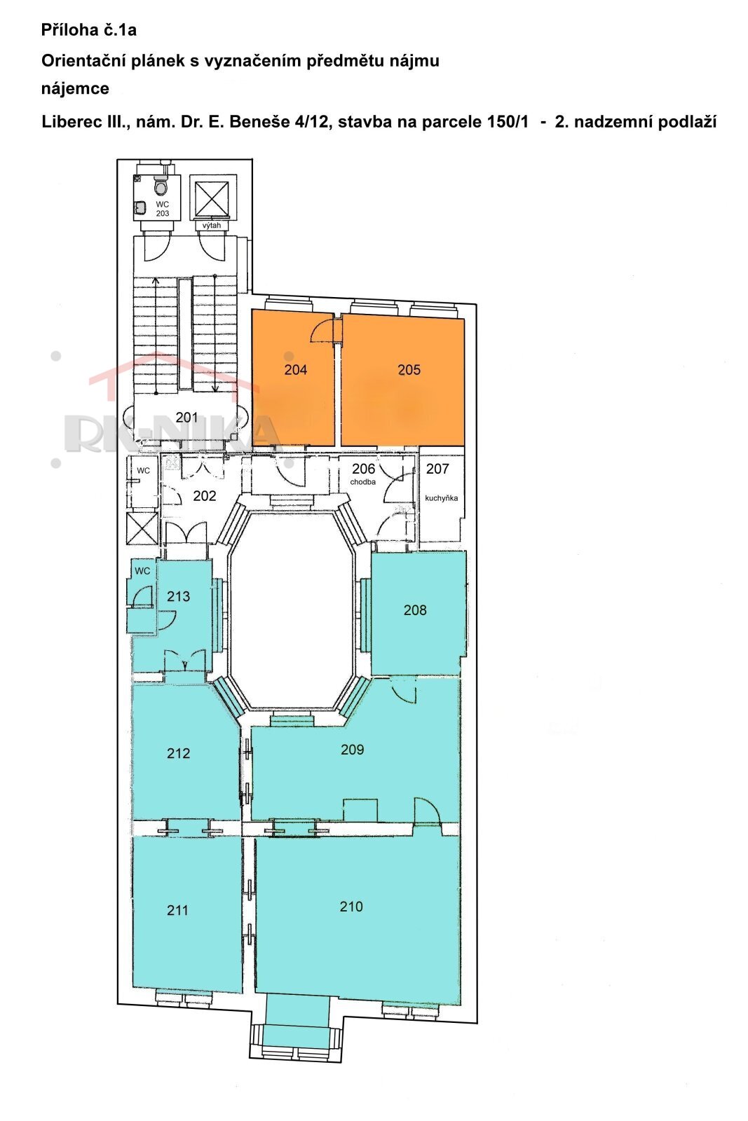 -Možnost rozšíření o další kanceláře ve 2. patře – 3 navazující místnosti o výměře 45,5 m².
