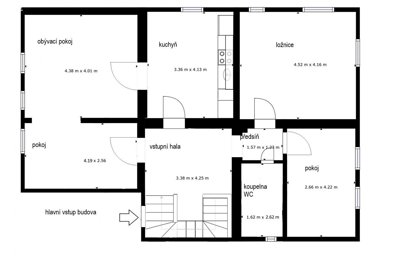 V současné době 2 bytové jednotky, které lze rozdělit na 4 samostatné jednotky.