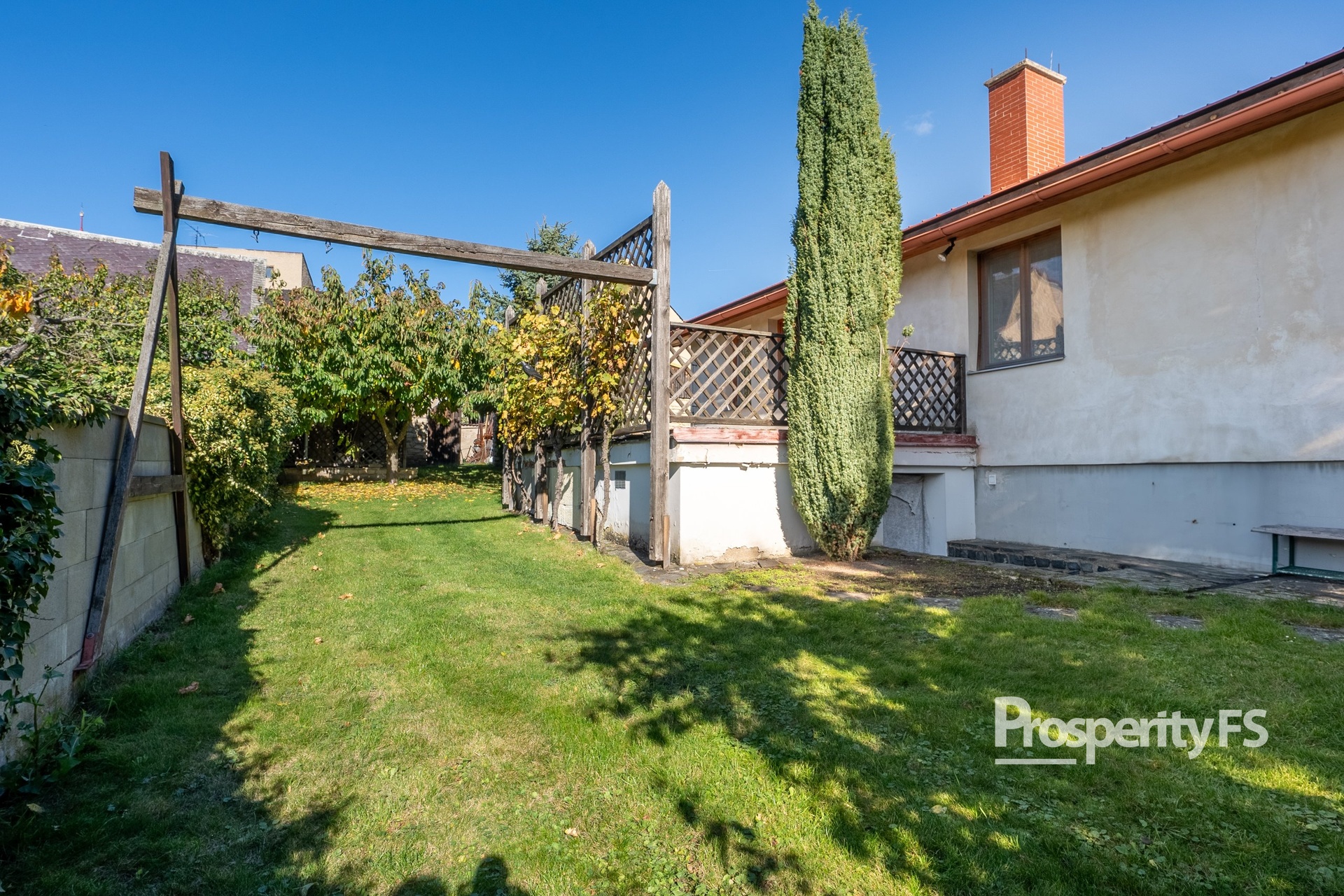 Pozemek poskytuje soukromí i dostatek prostoru pro aktivní rodinný život.