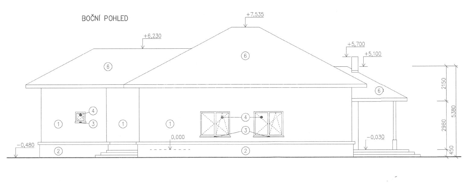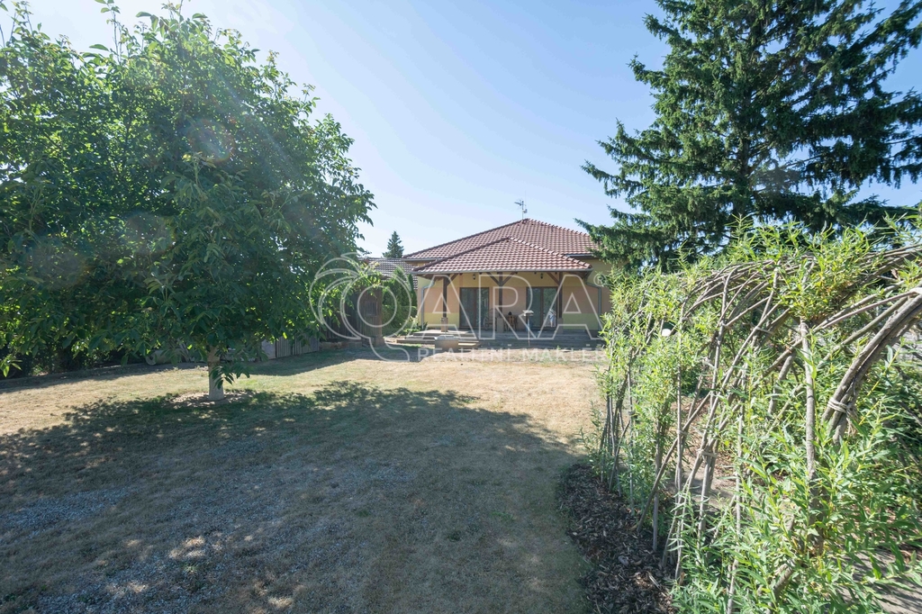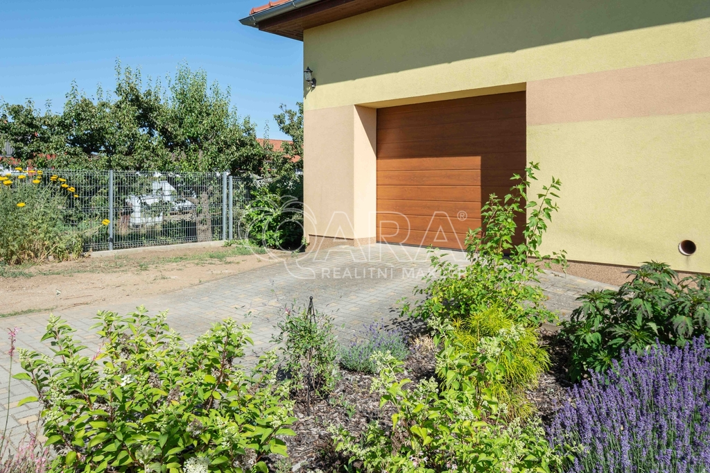 Dispozice přízemí o celkové vnitřní ploše 147,9 m2 + terasa o velikosti 27,6 m2: vstupní hala, chodba, kuchyň spojená s jídelnou, obývacím pokojem a vstupem na terasu, spíž, ložnice s vestavnou skříní a vstupem na terasu, dva menší pokoje, koupelna s vanou a WC, samostatné WC, technická místnost a garáž. Oplocená zahrada s brankou a vjezdovou bránou.