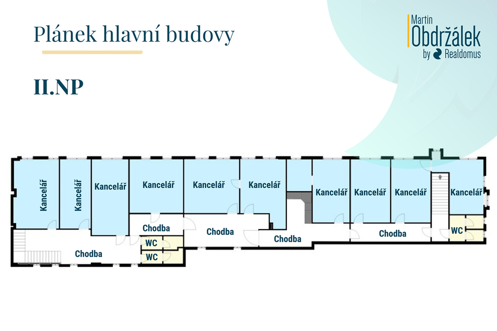 Areál se skládá z hlavní budovy a přilehlých výrobních a skladovacích prostor. V hlavní budově jsou v přízemí celkem čtyři velké prostory nabízející širokou škálu možností využití, od skladovacích, po výrobní prostory, případně kanceláře. Jeden z nich je rozdělen příčkou. Dále dvě menší technické místnosti, serverovna a toalety. Přístup do patra je z chodeb na obou stranách budovy. V patře je celkem deset samostatných kanceláří, společná kuchyňka na chodbě a čtyři toalety.