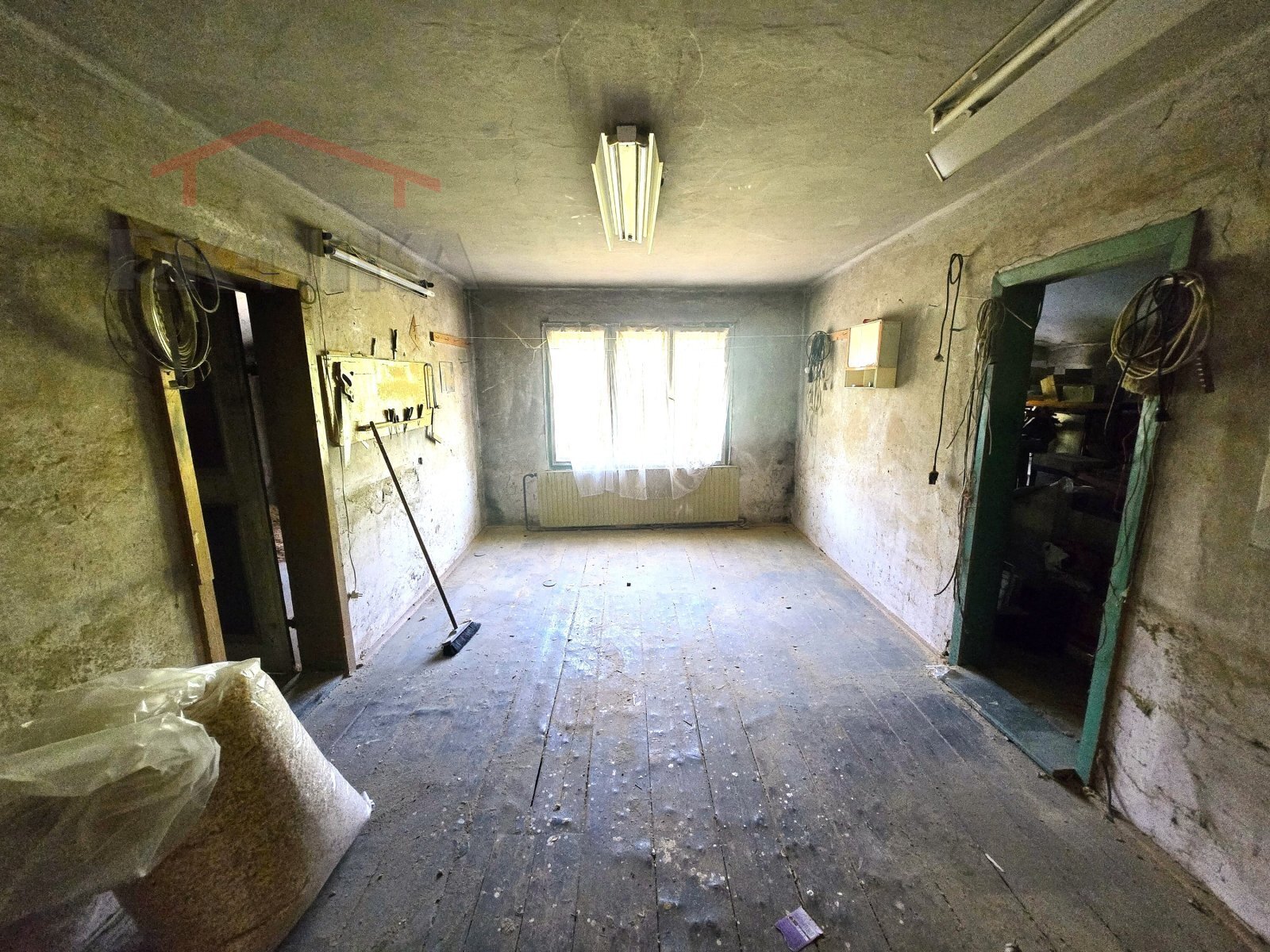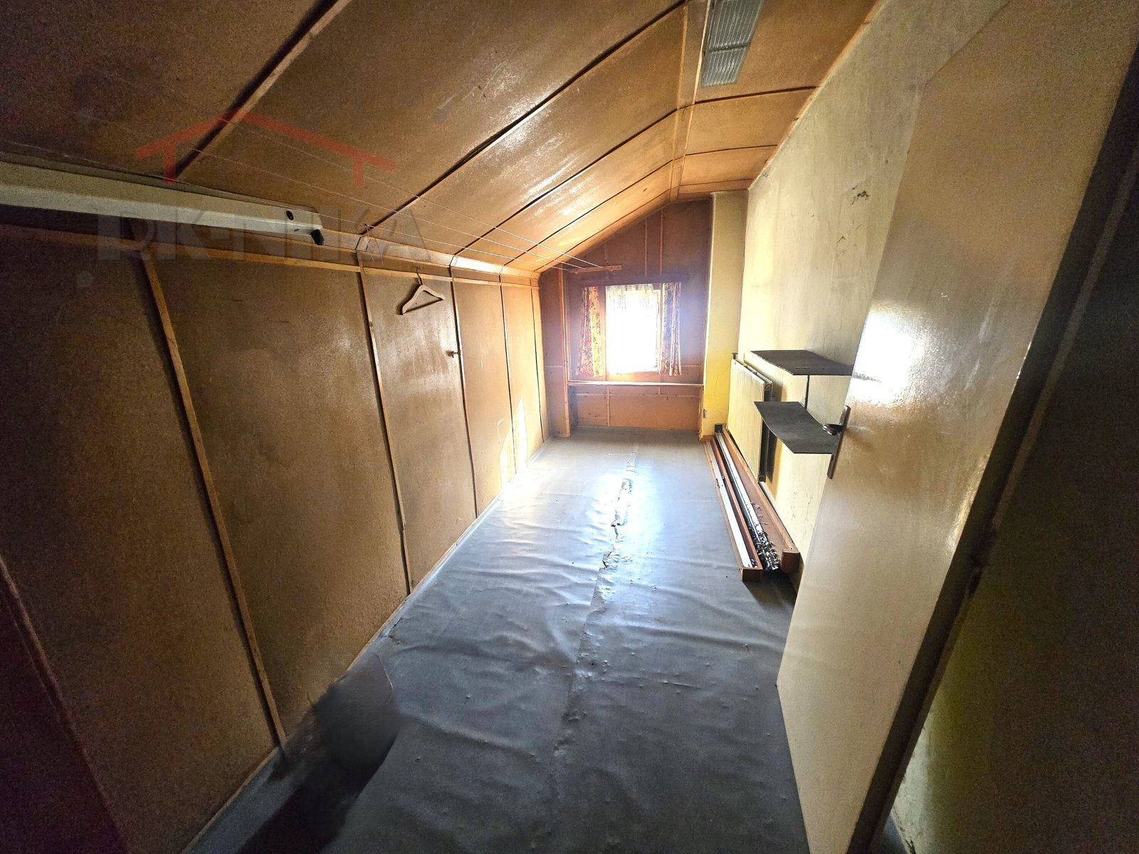 V podkroví se schodištěm dostanete na balkon a dále do obývacího pokoje, kuchyně, obytné komory, dílny s komorou a do dalšího samostatného WC. Dům je vytápěn ústředním kotlem na plyn a ohřev vody zajišťuje elektrický bojler. Inženýrské sítě zahrnují elektrický proud (220/380V), obecní vodovod, kanalizaci a plyn.