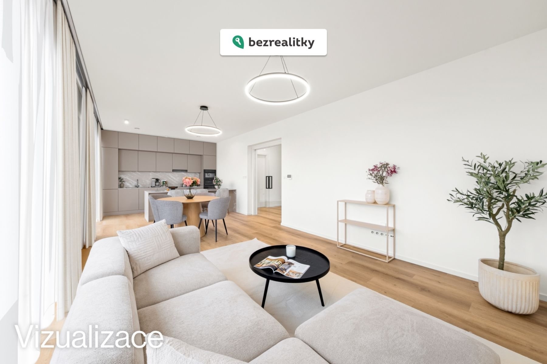 Všechny fotografie jsou skutečný stav nemovitosti, pouze pro kuchyňkou linku a závěsy byla použita vizualizace. Zahrada je ve fázi terénních úprav, které budou dokončeny jakmile to klimatické podmínky dovolí.