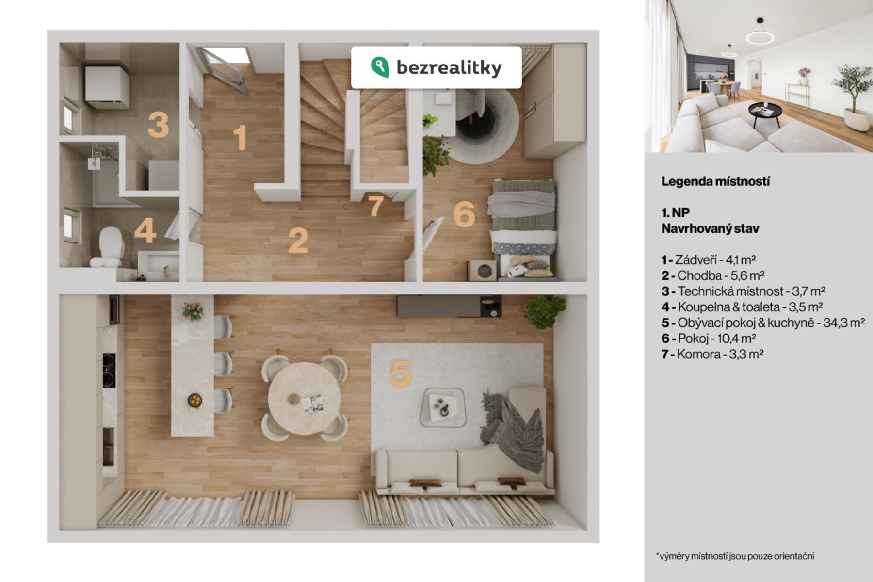 - nadstandardně velká šestikomorová okna s trojsklem Oknotherm, HS portál v obývacím pokoji pro přímý výstup na terasu o ploše 38m².
