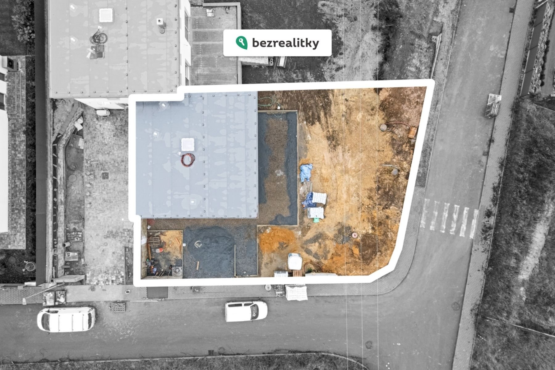 -dvě parkovací místa před domem s přípravou na wallbox