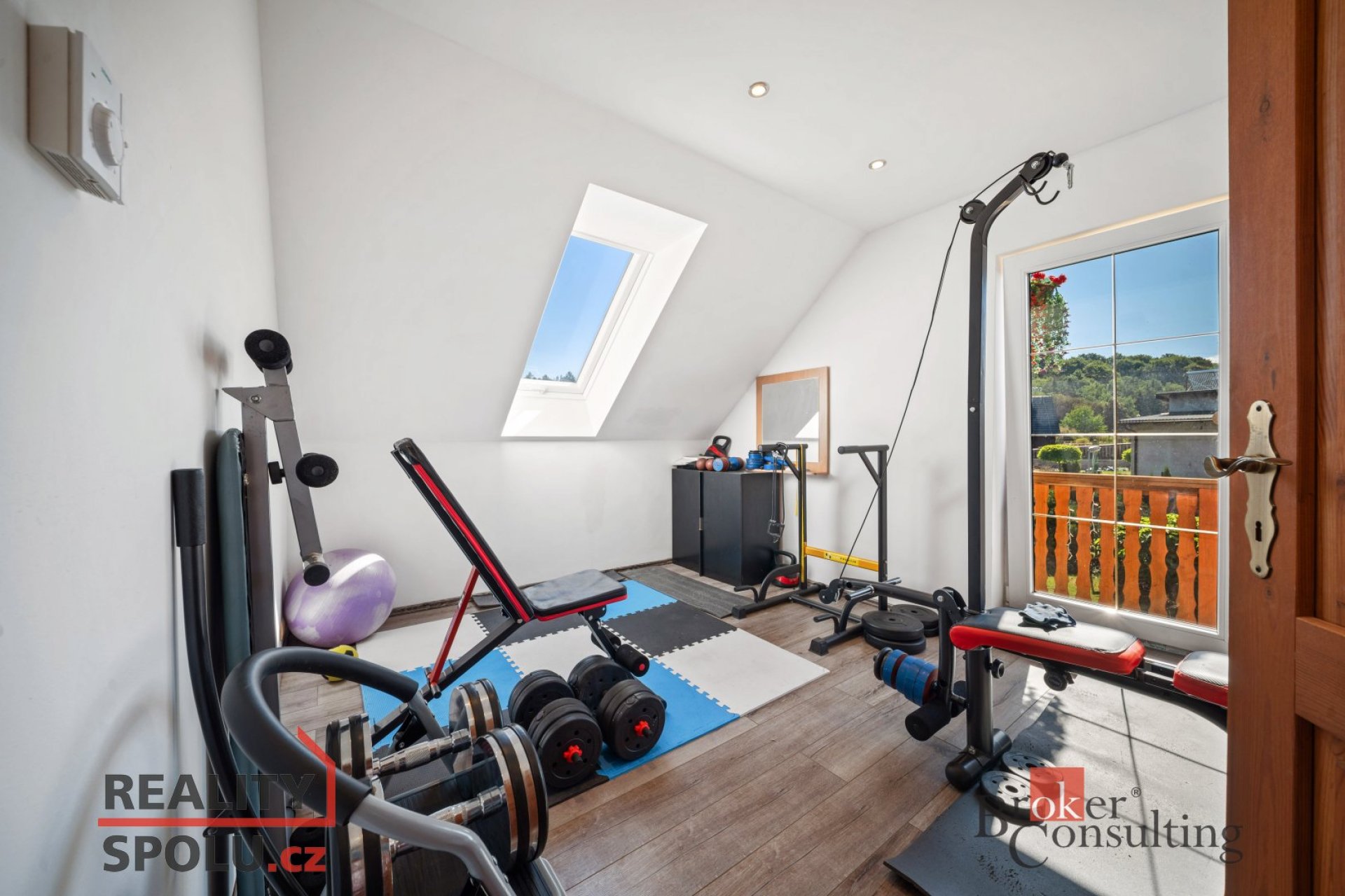 Dispozice domu 5+kk nabízí vstupní chodbu, světlý obývací pokoj s krbem a přímým vstupem na terasu, čtyři ložnice, jedna koupelna v přízemí se sprchovým koutem, druhá koupelna ve druhém patře s prostornou vanou, šatna, sklad, spíž a technická místnost.
