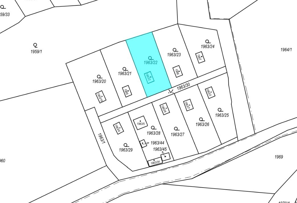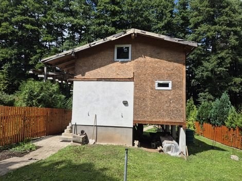 Prodej rekreačního objektu (rozestavěné chaty), užitná plocha 55 m2, pozemky celkem 388 m2, včetně spoluvlastnického podílu o velikosti id. 1/10 na přístupové komunikaci, Libušín, Kladno, Středočeský kraj