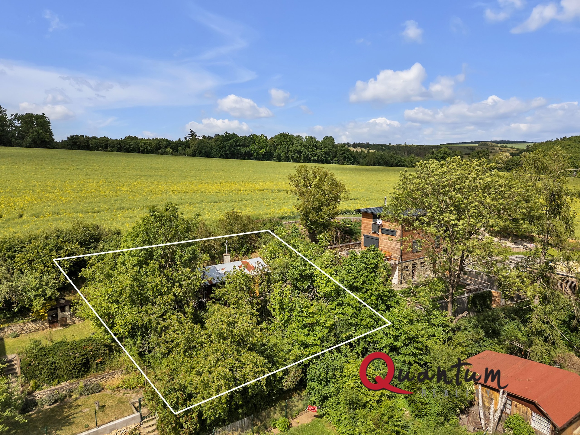 Svažitý pozemek s chatou – Okoř, 404 m²