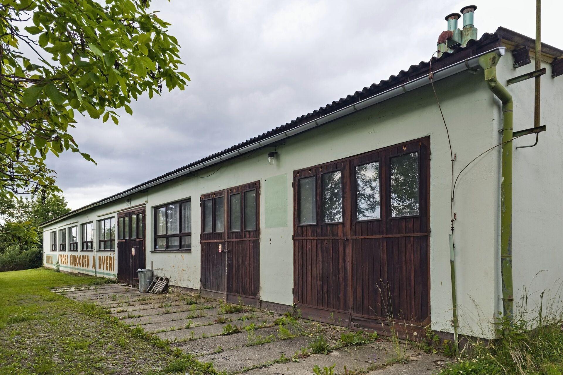 - dílna 437 m2 (30,6 x 14,3 m, světlá výška 3,37 m), do dílny vedou 3 x vrata 3,8 x 3,2 m,