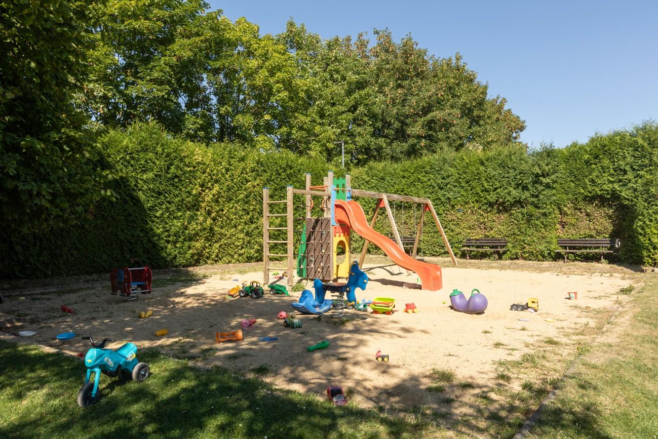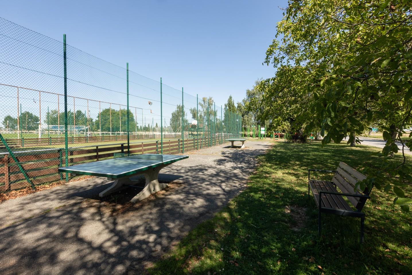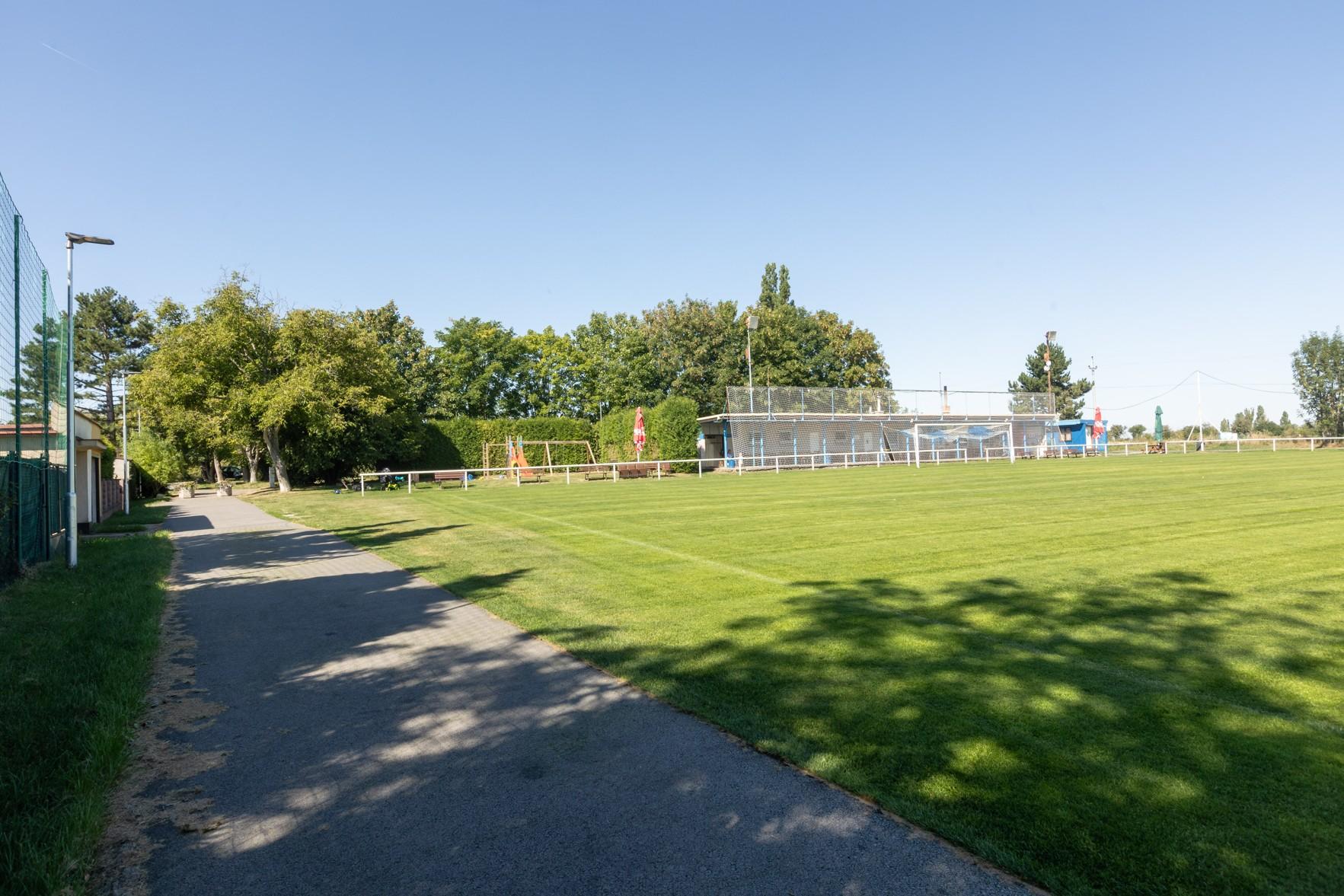 Velkou výhodou je rovněž přilehlé fotbalové hřiště, kde je možné si jít kdykoliv zakopat či zaběhat s dětmi. Hned vedle je dětské hřiště s pískem, prolézačka a houpačky. Na druhé straně fotbalového hřiště je basketbalové hřiště, venkovní posilovna a stoly na ping pong.