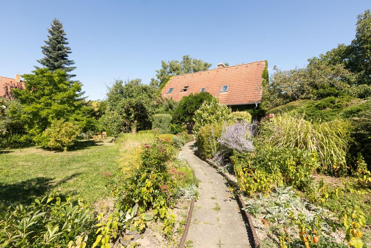 Chloubou a nepostradatelnou součástí této nemovitosti je 728 m2 velká zahrada. Je vytvořena s citem, kombinují se v ní okrasné prvky s ovocnými keři a stromy, které plodí po celé léto a podzim výborné ovoce (rybíz, angrešt, maliny, ostružiny, vinná réva; jablka, třešně a švestky). Na podzim jsou k dispozici i vlašské ořechy.