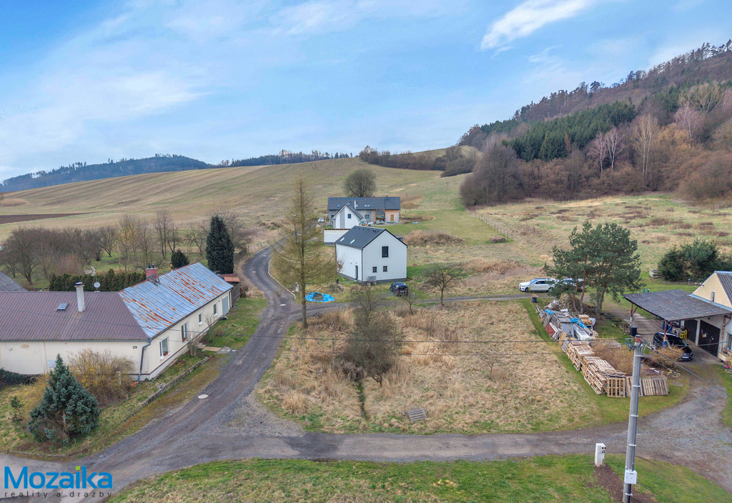 Pozemek se nachází na okraji obce, v příjemném a klidném prostředí, které přímo vybízí k pohodovému rodinnému životu. Jedná se o rovinatý terén, který výrazně zjednodušuje a zlevňuje samotnou výstavbu – nemusíte se tedy obávat nákladných terénních úprav ani komplikovaných základů. Celá lokalita působí vzdušně a přirozeně, okolní příroda nabízí každodenní odpočinek přímo za vaším budoucím domem. Přístup na pozemek je zajištěn po zpevněné obecní komunikaci, takže doprava stavebního materiálu i každodenní provoz budou naprosto bezproblémové.