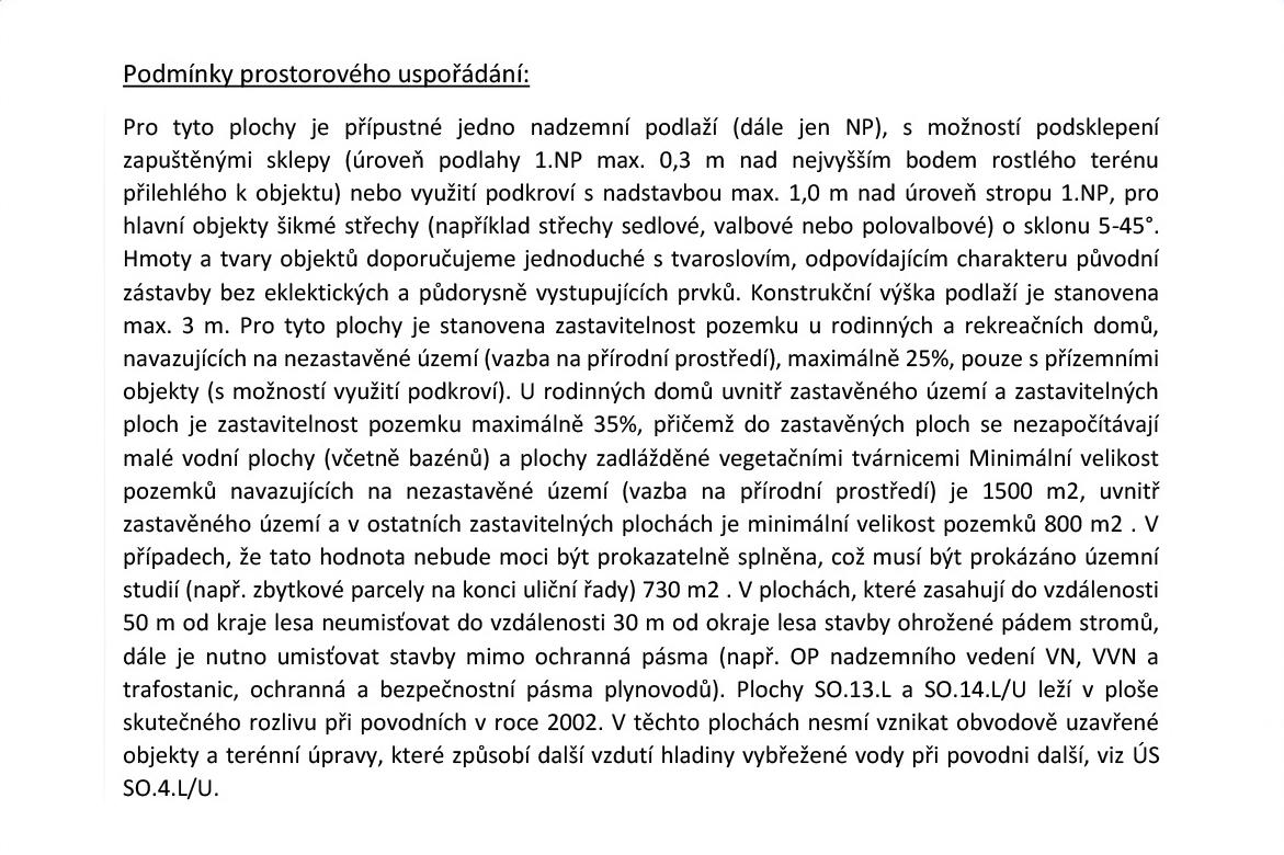 Dle územního plánu obce je minimální plocha stavební parcely stanovena na 800 m2, což znamená, že tento pozemek lze v budoucnu rozdělit až na dvě samostatné stavební parcely.