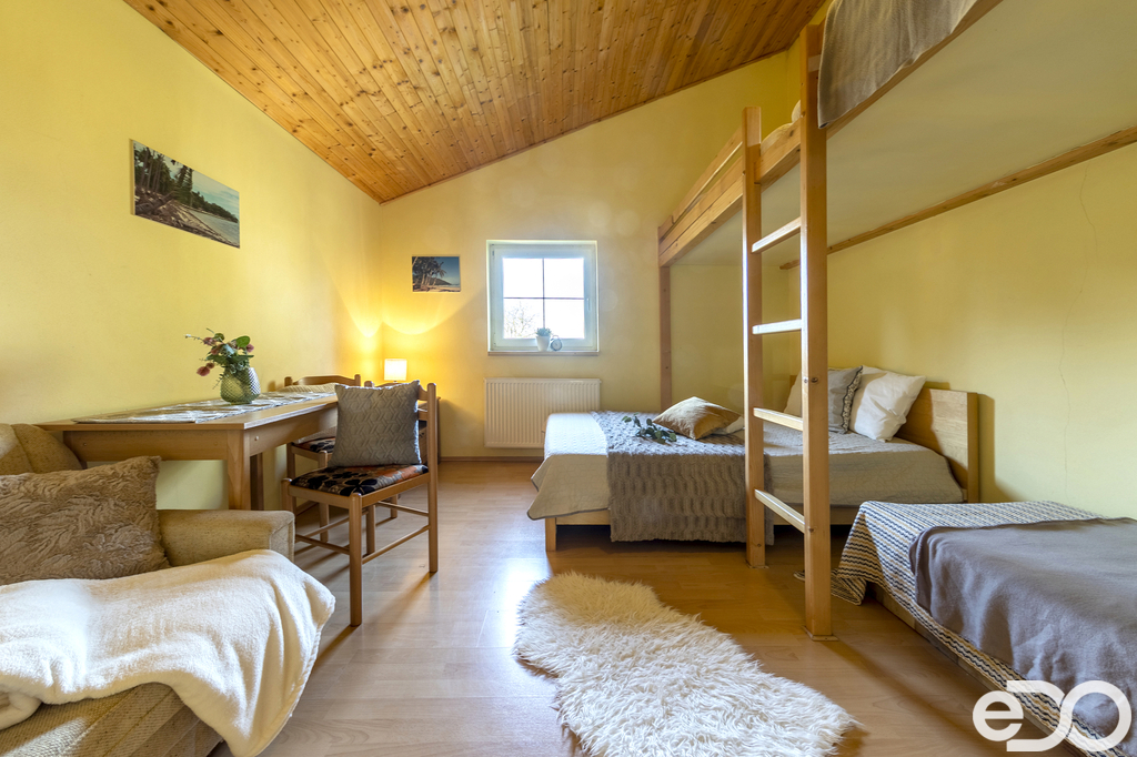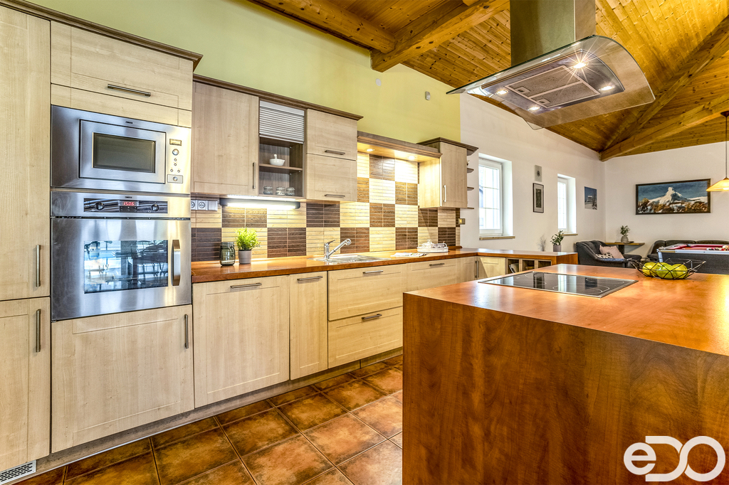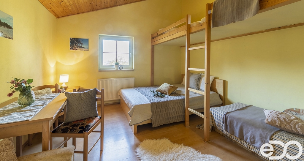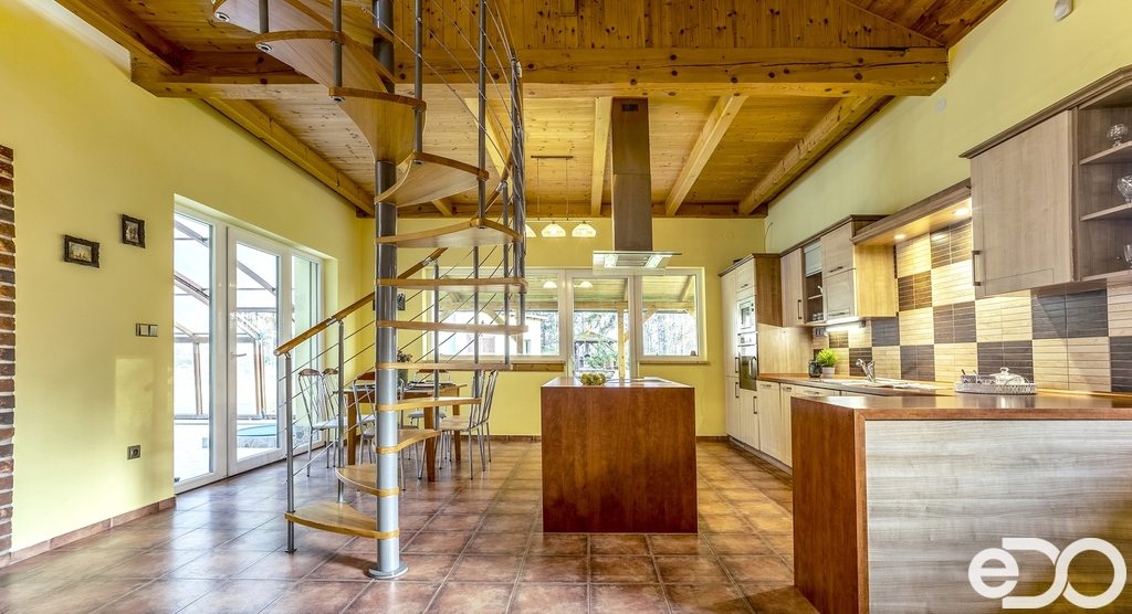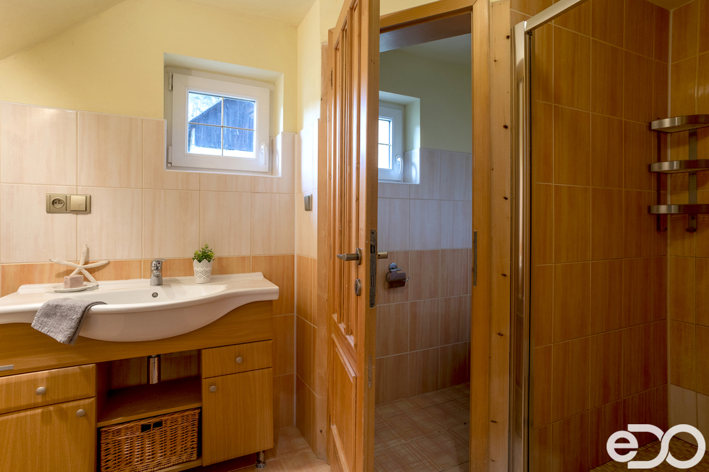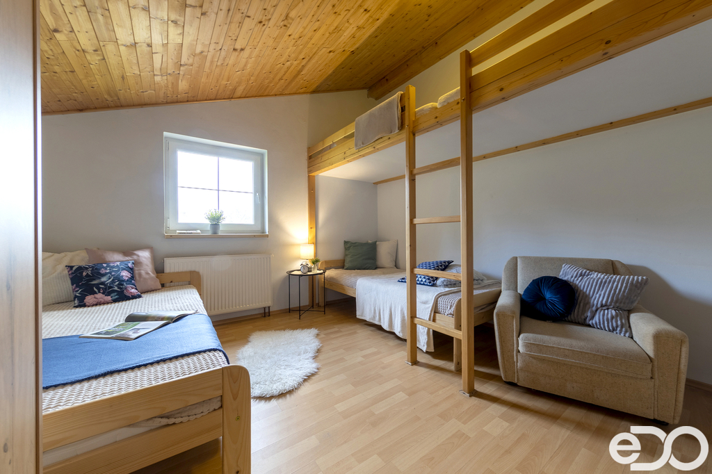 Tato vila vytváří dojem horského chaletu díky modernímu zpracování vnitřního prostoru z přírodního materiálu s kombinací kovu a dřeva. Z příjezdové cesty dojedete rovnou na parkoviště u domu, kde také naleznete hlavní vchod. Dům disponuje s prostornou a velkou halou, ze které se dostanete po schodišti do všech pokojů. V přízemí se nachází sauna, vířivka a vyhřívaný bazén se slanou vodou. Moderní vybavenou kuchyň s jídelnou doplňuje útulný prostor s kulečníkovým stolem a krbem. Dalším vstupem, jenž tento dům nabízí je z kuchyně na terasu a zahradu, která je roky velmi dobře udržována a oplocena. Na zahradě se nachází menší domek, dřevěný altán ze kterého se dostanete pěší (5min) do kamenolomu kde můžete strávit den koupáním. Dominantou tohoto chytrého domu jsou nejen velmi nízké provozní náklady (vlastní vrtaná studna, kombinace vytápění, které si můžete zvolit: krb, solár, FVE či elektrické vytápění v podlaze), ale roční výnos z pronájmu, který činní do 1.000.000,- kč. Lokalita je velmi vhodná jak pro klidný rodinný život v soukromí nebo jako investice k pronajímání!