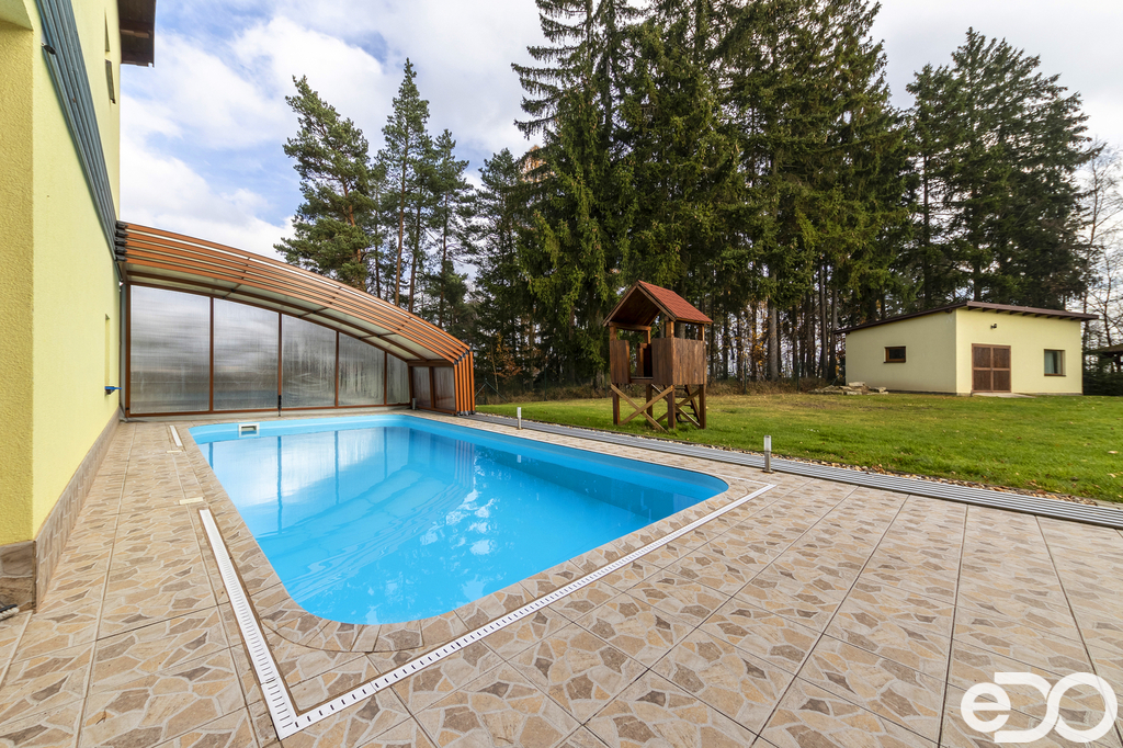 K prodeji nabízím unikátní vilu 4kk s vyhřívaným bazénem, wellness a zahradou 1310m2 ve Vilémovci v Lipnici nad Sázavou.